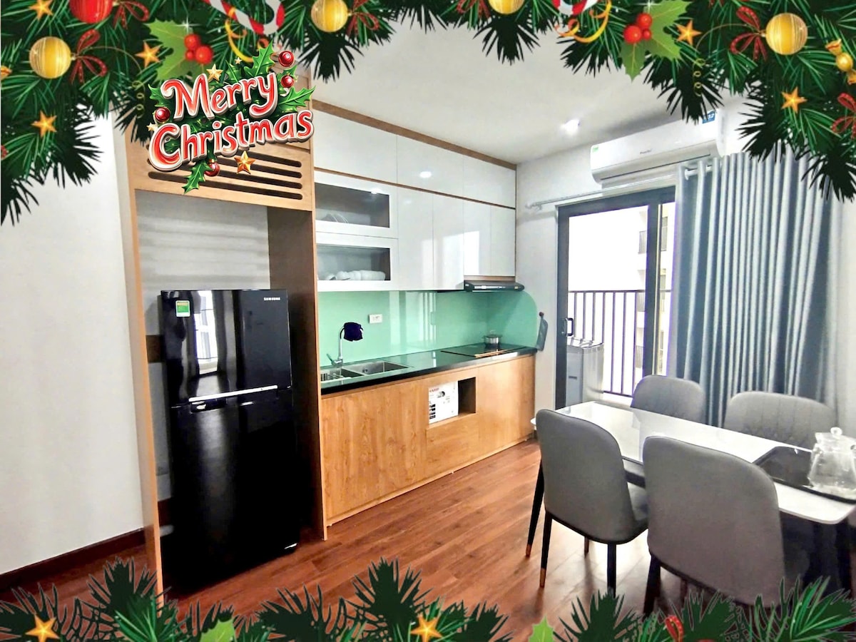 A luxurious, modern apartment located on the 25th floor of a downtown building in Thai Nguyen. From the room, guests can enjoy a panoramic view of the city from above, with all amenities conveniently located both around and inside the building.