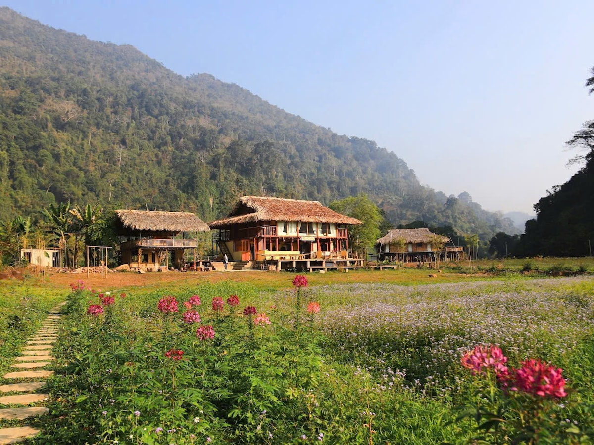 Located at the heart of Lang Hao Huc, surrounded by plenty of roses, tropical fruit trees and veggies. Small spring streams near by with 247 relaxing sounds is plus. 4 seasons swimming pool with breathtaking view, 150m2 working space with panorama view of the valley and Nui Coc lake. Local dishes with from- farm -to- table ingredients are always ready to be ordered. No smoking allowed, Pet friendly. Bike, SUP and daily tours are provided at additional expenses.