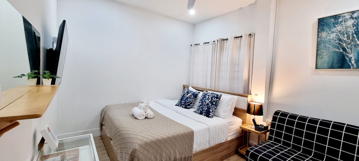 * Romantic, serene and peaceful environment 2 km from where HBO Max's filmed their hit show "White Lotus" season 3. * Just a 20-second walk to a beautiful, calm, sandy beach * Reliable and very fast WiFi Internet 100+ Mbps), AirCon, Hot Shower, 32" flat screen TV * Full Kitchen * Sea-View * King size bed + sofa-bed (linens for the sofa bed included with bookings for 3+ guests) * Walking distance to many restaurants, shops, yoga, laundry, fitness & main road * Motorbike & car rentals available