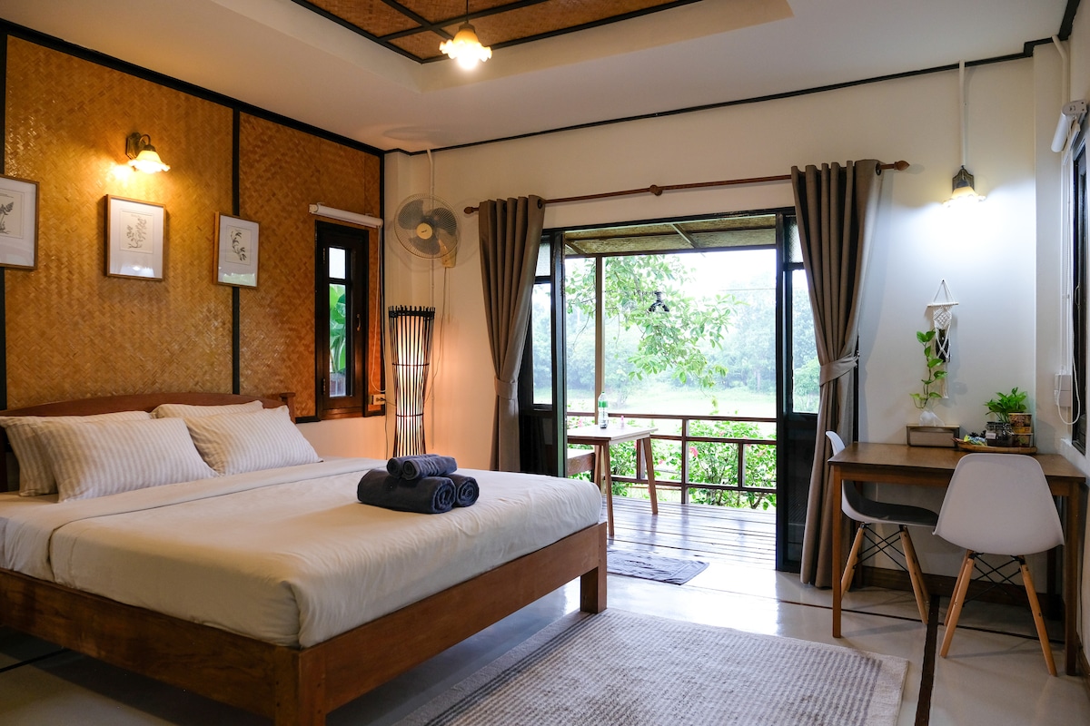 Welcome to Riva KG house, where you can enjoy the stunning mountain and river views! This place is just right in front of the river!!! You'll be closer to nature and able to escape the chaos of the city. Our place is located in Kanchanaburi, about a 3-hour drive from Bangkok. We’re about 55 kilometers away from the city and 600 meters away from the main road which makes our place very quiet and private! We offer free kayak, SUP board, and bicycle rentals for all guests staying at KG House.