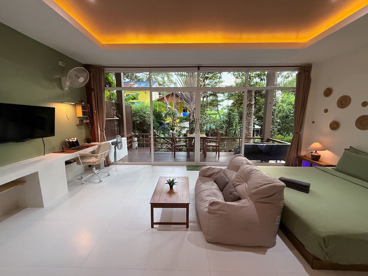 A DIY Solo Retreat without paying a fortune, staying at this cute cozy Aircon beachfront bungalow with good WiFi, so close to the sea with serenity beach right in front plus short walking distance to the mountain to go hiking and spend time in Silence with nature. Calm & peaceful atmosphere of international guests no more than 10 who believe in the healing power of nature. Convenient location, with public transports, Cafe & Restaurants, Fruits shop, motorbike rentals and tour. *strict 1 Adult*