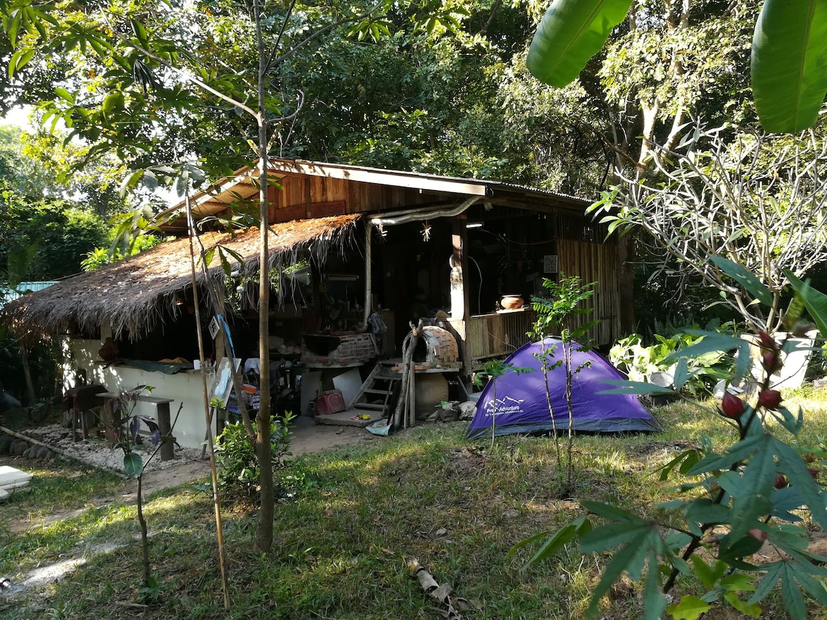 The place is located on the hill top. Stay comfortably in a tent with nature and great view of Doi Chiang Dao and rice field. Great base for your activities in the area. Clean mattress, bedsheet and blanket are provided. Shared toilet and bathroom.