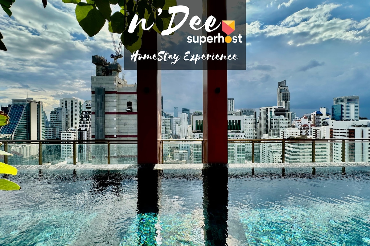 曼谷市中心宁静泳池,健身房,1分钟到轻轨站