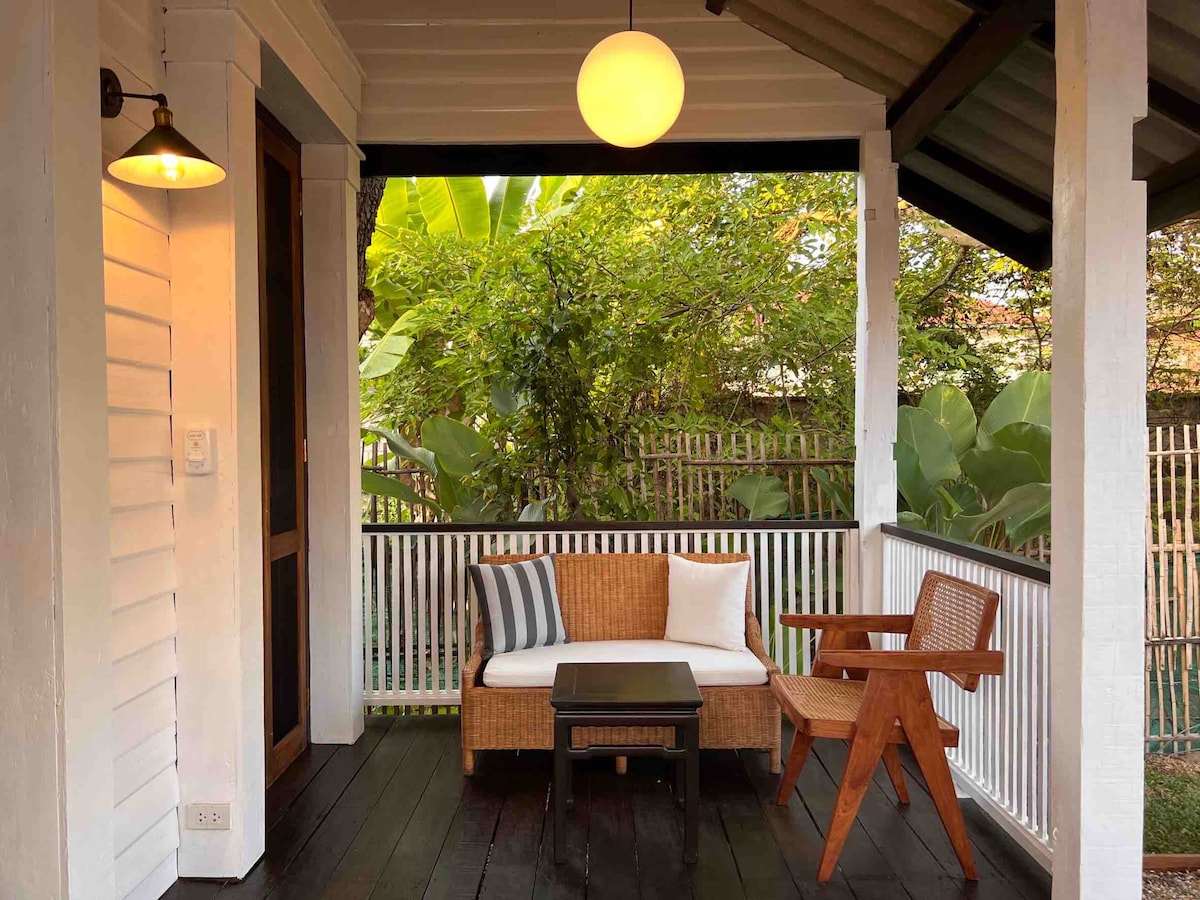 This cozy Western style Cottage of 90sqm has 2 rooms / 2 bath, sleeps up to 3 people and has a fully equipped kitchen. It sits on a 7500sqm privately-owned property with only 2 houses amidst a luxurious tropical garden providing a jungle feeling. The Cottage is an exclusive rental opportunity with private access to a large 12x4m swimming pool and an adjoining comfortable Thai-style Sala with Wifi on all property. It is ideal for 2 adults or a couple with one child.