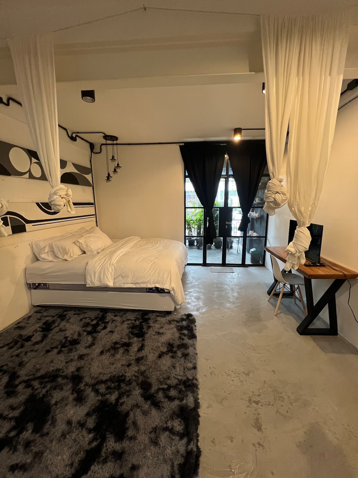 YINDEE ROOM – URBAN STAY IN THE HEART OF ASOKE A 60m² loft-style space designed for travelers seeking flexibility, groups of friends, or small families. Featuring 1 queen bed + 1 sofa bed, this private yet connected stay offers a rare Bangkok living experience. ✔ Private kitchen with full amenities ✔ Open-air balcony as a cozy dining space ✔ Loft-style layout blending modern comfort with city charm Stay in Asoke’s vibrant core, where you can live like a local and explore Bangkok with ease.