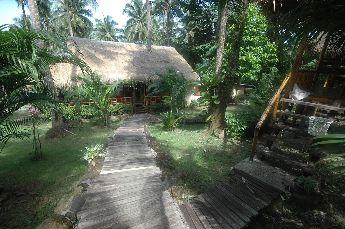 Our place is 4km from town, surround with coconut, banana and palm oil and the room is next to the jungle river. This area is very peaceful and quite. Our neighborhood are very nice and friendly. Our room is designed base on natural idea and suite for hot and humid in the garden. Room is well-designed, comfortable and clean. We prepared free minibar; local Chumphon coffee, milk, cereal and cracker. At the common are we have space for relax and working Kayak and bicycle is free using