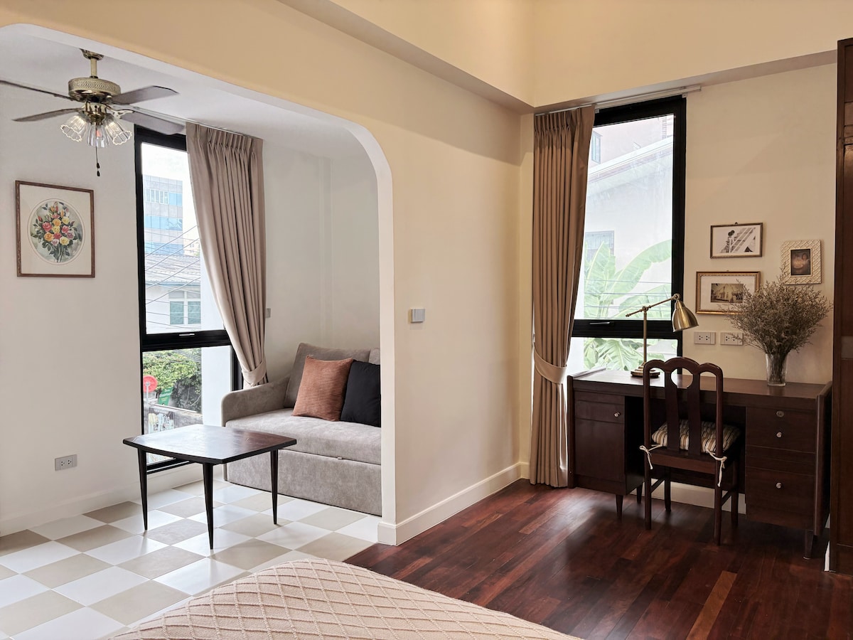 📍Sanampao BTS (1min) Your own private two-floor unit (4th-5th floor) in a beautifully renovated central Bangkok townhouse 🚂 1 min walk to the BTS Sanampao (N4) 🛒 4 stations to Siam Paragon 🚶Ari’s cafés, bars, and restaurants within walking distance ☕️ A modern café and 7-Eleven next door ☕️ Starbucks 1 mins walk 🔝Private stairway access 🏡 3 🛏️ | 2 🚿| 2 🚽 {ideal for 4–6 guests} A unique design, prime location, and space for groups.