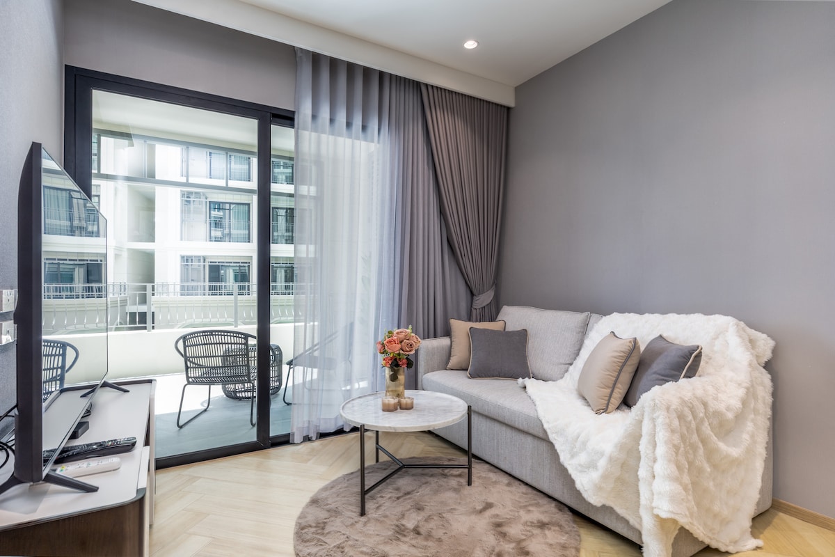 Please be noted, there are construction work near condo. The Title Legendary, in the heart of prestigious Bang Tao, just 700 meters from the beach. A bright apartment of 44 sq. m, in a laconic modern design, equipped with high-quality designer furniture and advanced technologies, each of your days will be filled with coziness and comfort. A family of 4 or 4 adults will comfortably stay here. Panoramic windows with a beautiful view of the garden and pools.