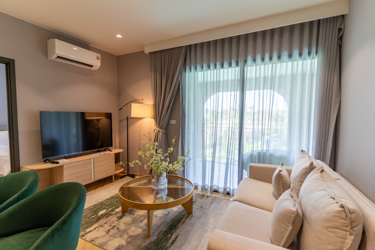 Stay at Title Legendary Bang Tao and enjoy a modern 1-bedroom apartment with calming city views, bright interiors, and a full kitchen. Relax on your private balcony or unwind at the project’s resort-style pools, sauna, gym, and lush garden areas. The building offers 24/7 security, elevators, and easy access to cafés, shops, and Bang Tao Beach, just a short walk or drive away. Perfect for couples, long stays, and remote work, with fast Wi-Fi and in-room amenities designed for comfort.