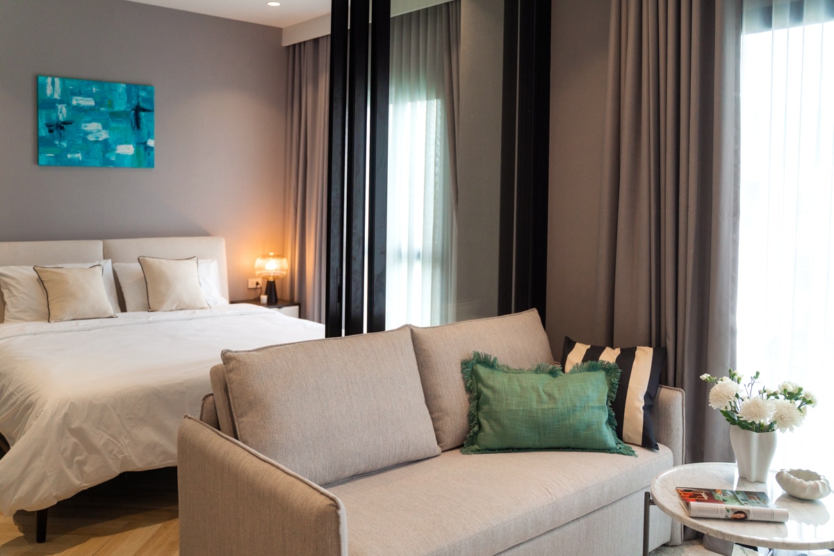 A cozy 34 m² studio on the 7th floor of The Title Legendary Bang Tao, featuring a private balcony. The interior includes a fully equipped kitchen, Smart TV, king-size bed. Residents have access to premium amenities: multiple swimming pools, a fully equipped gym, dedicated yoga and boxing zones, a sauna with an onsen, a coworking space, a cinema room, a game lounge, and even a music studio. The property is just minutes away from Bang Tao Beach.