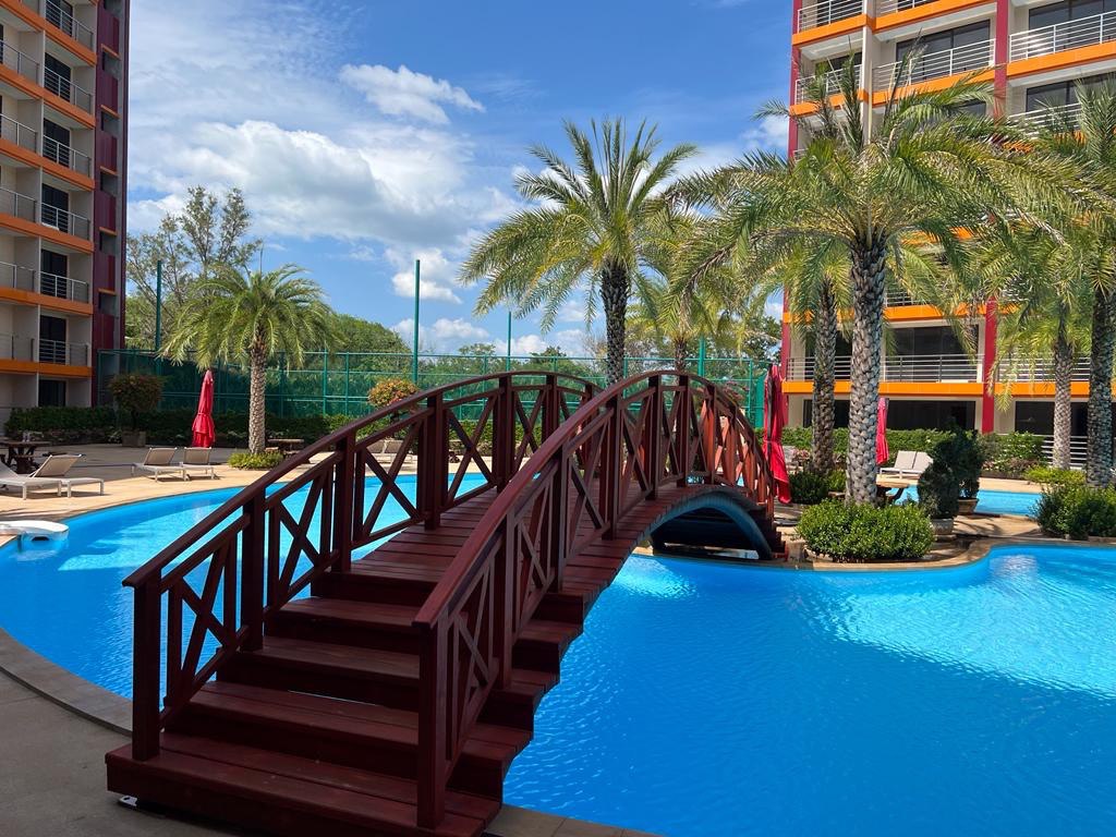 Newly renovated one bedroom apartment. Upgraded with new smart TVs, laundry area, new furniture and equipped kitchen. This apartment offers a lovely green view from the 4th floor and is only 450 meters from the beach. The complex offers several swimming pools and parking. This location ensures a pleasant stay with convenience stores, restaurants, pharmacy and motorbike rentals all within walking distance.
