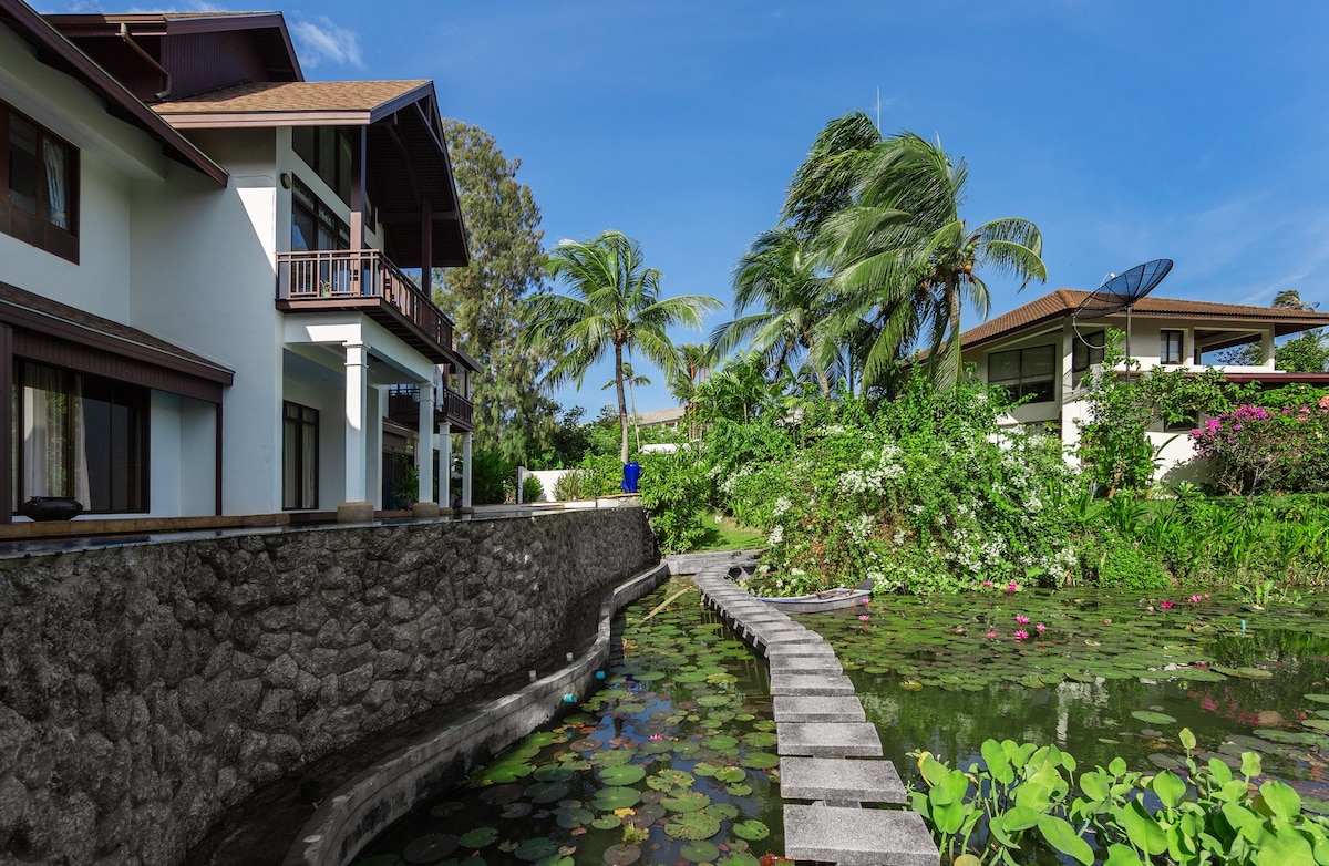 湖景私人泳池的联排3卧别墅5分钟车程到海滩