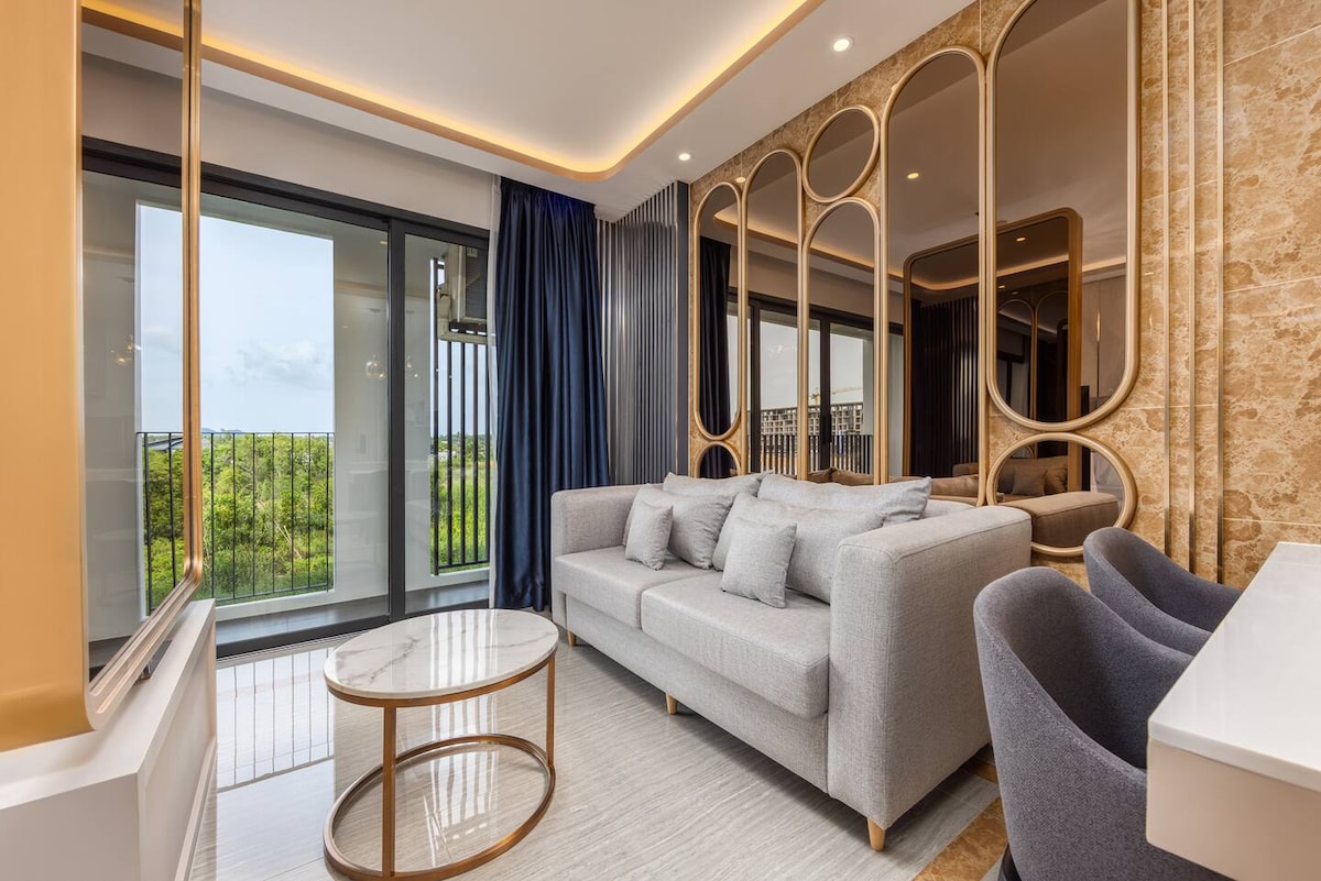 Stay at our 1-bedroom apartment in Laguna Phuket, Bang Tao, where style meets serenity. This 65m2 gem offers a unique blend of comfort and aesthetics, complemented by a unique golf course and view. Just a 10-minute walk from the beach, this bright and thoughtfully designed space invites you to unwind in a tranquil setting. Immerse yourself in the charm of Laguna Phuket and enjoy a perfect getaway in proximity to Boat Avenue, a vibrant hub with shops and restaurants. Your perfect escape awaits.