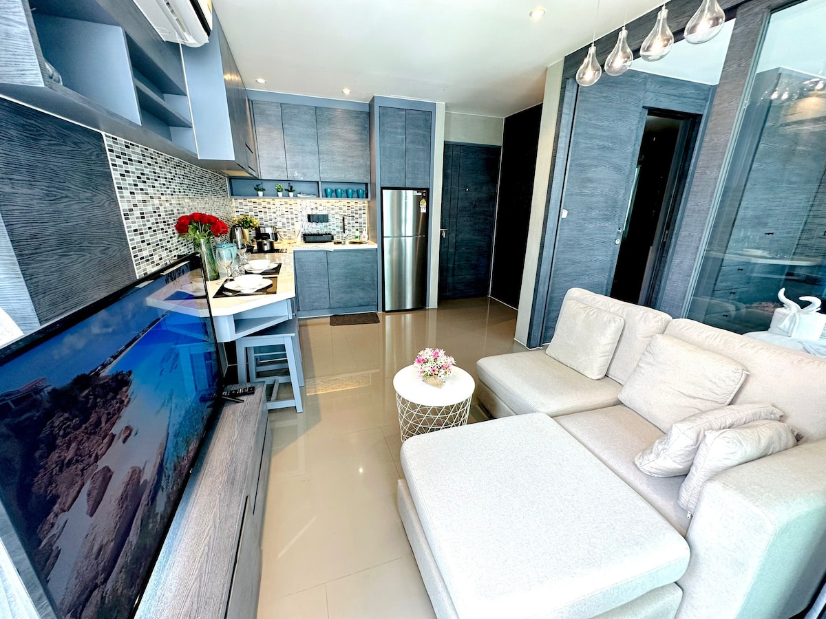 在這個平靜、時尚的空間中,好好享受放鬆身心。恬靜舒適。安裝了獨立wifi, 快速穩定。渡假村設有三个泳池,两个poll side bar, 2 間餐厅,建身中心,Clinic, fitness center, wellness center,步行10分钟到卡瑪拉海灘,步行5分鐘可到達世界著名Carnival Magic 和 Phuket FantaSea, 地点優閱,公寓静中带旺,long term 和短暂旅游皆宜