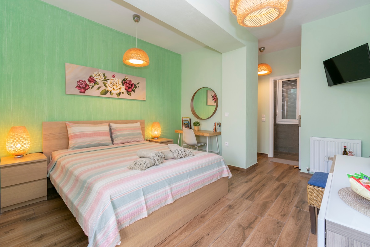 Lovely summer house at Kalamitsi beach, the best summer destination! In the apartment there is a bedroom with a big double bed, a living room with a corner sofa that becomes a double bed. The apartment is fully equipped with furniture and kitchen equipment. It's located in an excellent area, only 100m from one beach (in Thalatta camp) and 400m from Kalamitsi beach, which is ideal for families and couples for a peaceful stay.