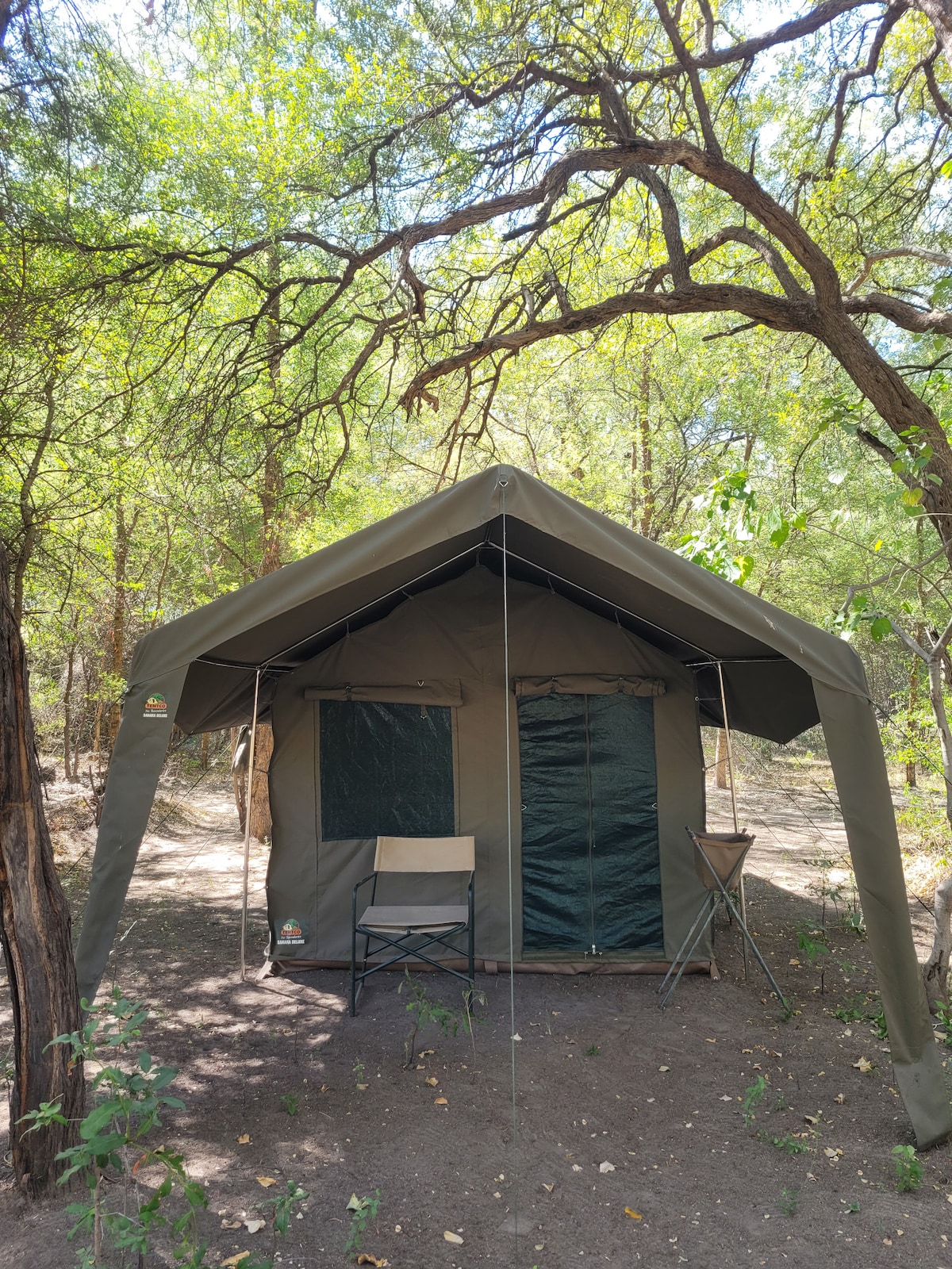 Reconnect with nature at this unforgettable escape. Glamping under the Jackalberry tree, alongside the Boro river, north of Maun, on the edge of the Okavango Delta. The river gracefully passes by our unique Bar & Restaurant. Dine at our pizzeria, relax at the bar, soak in our pool, tan in the sun, breathe in the African bush while watching the wildlife on a guided river trip. Bathroom facilities are communal. Hand washing of laundry is available on request. Wi-fi is available at the bar.