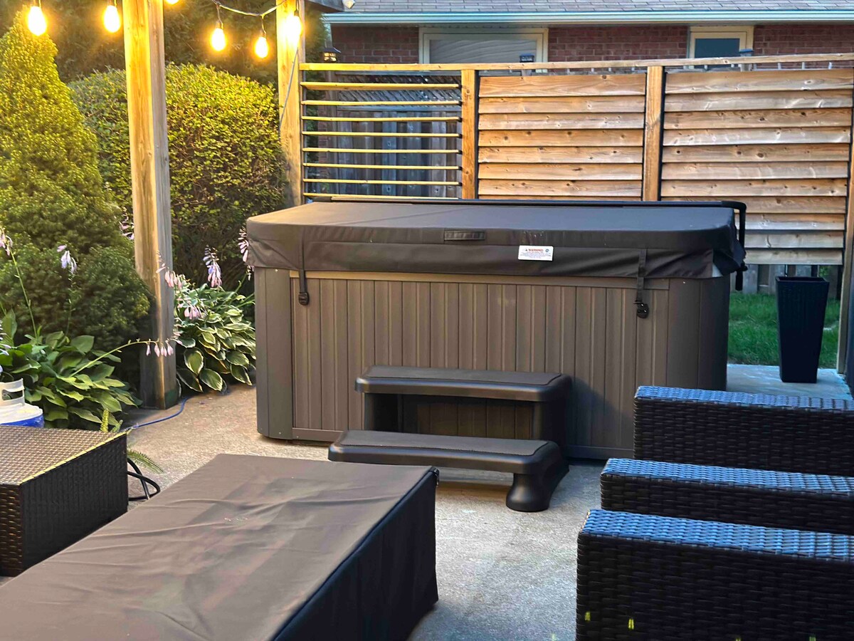 Welcome to our retreat in west London! This stylish Two-Level Basement Split is a guest suite ideal for friends and families. Our 1+Den has 2 comfy Queen Beds, 1.5 bathrooms, a large kitchenette with every appliance you need, and a foosball table for some competitive fun. Outside, there's a hot tub, firepit (BYO wood), BBQ, and outdoor eating area. We live upstairs and are available to assist with the indoor or outdoor amenities at any time!