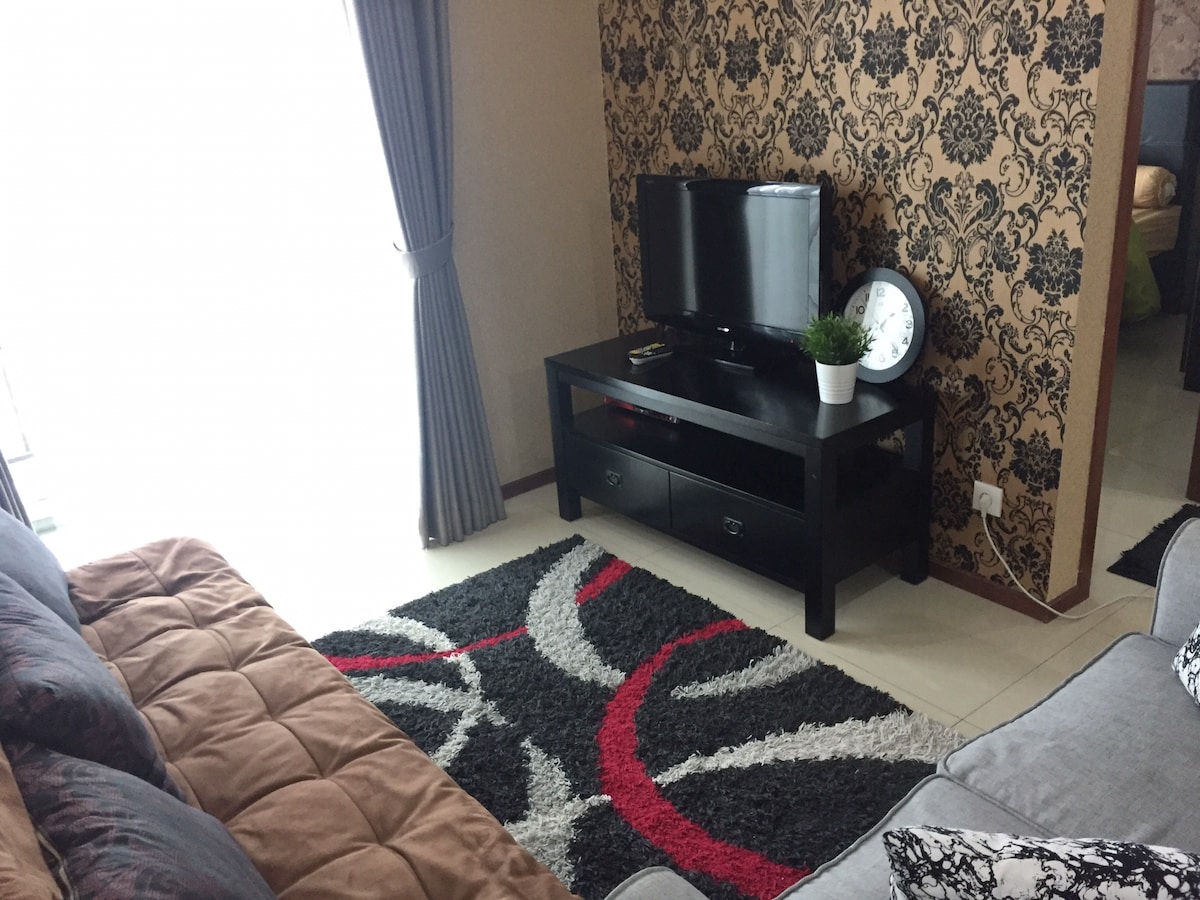 One bedroom apartment,100mbps WiFi speed. New bathroom with hot water, washing machine, kitchen with gas stoves, microwave,fridge,rice cooker,toaster, utensils &a sitting room that can be used as additional bedroom with android TV providing Netflix & Disney.The Apartment is within Thamrin City Shopping Complex. Please note that we are in a tropical country so some type of insects are common. I employ a professional regular pest control in my unit, but you may still see occasional cocroaches