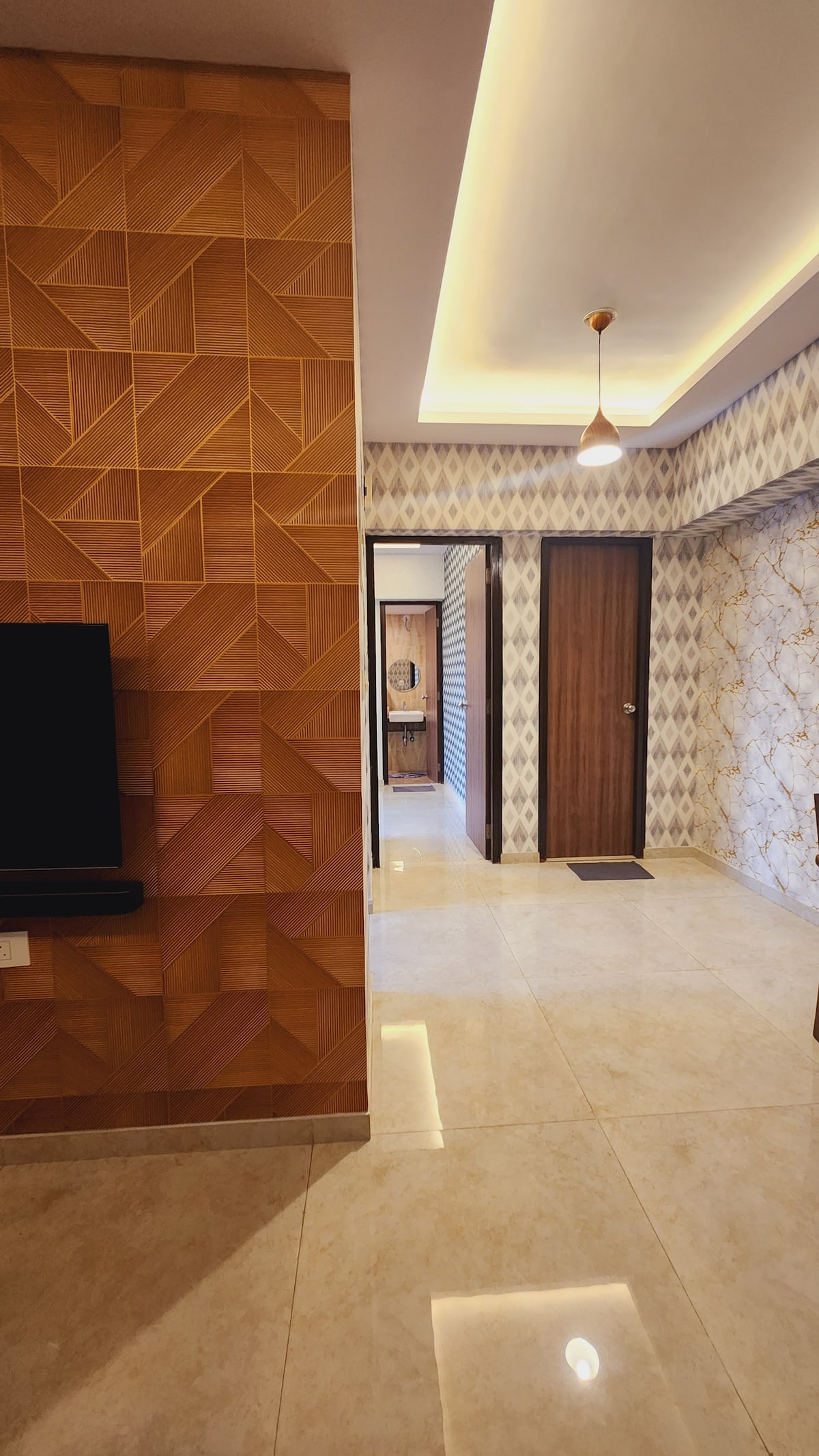 Mountain-facing rooms with Balcony, Free Parking, highspeed Wi-Fi, Smart TV with OTT apps, well maintained, beautiful and comfortable apartment with power back up, situated right in the heart of Palava City It is the great place for group and families. Couple Friendly Perfect place to relax, work or get together in this calm, stylish space. Top floor Flat with scenic view and windy, located near Promenade Park. Size: 500 sqft. You will get the entire apartment for yourself!!