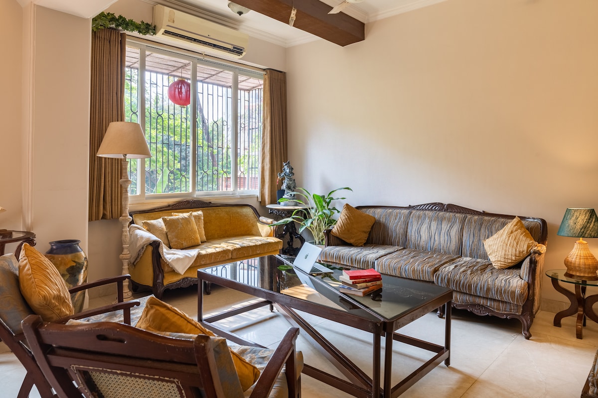 House 7, Marine Lines . Newly renovated, bright 2BHK in the heart of Mumbai, steps from Marine Drive, Chowpatty, and Metro Cinema.