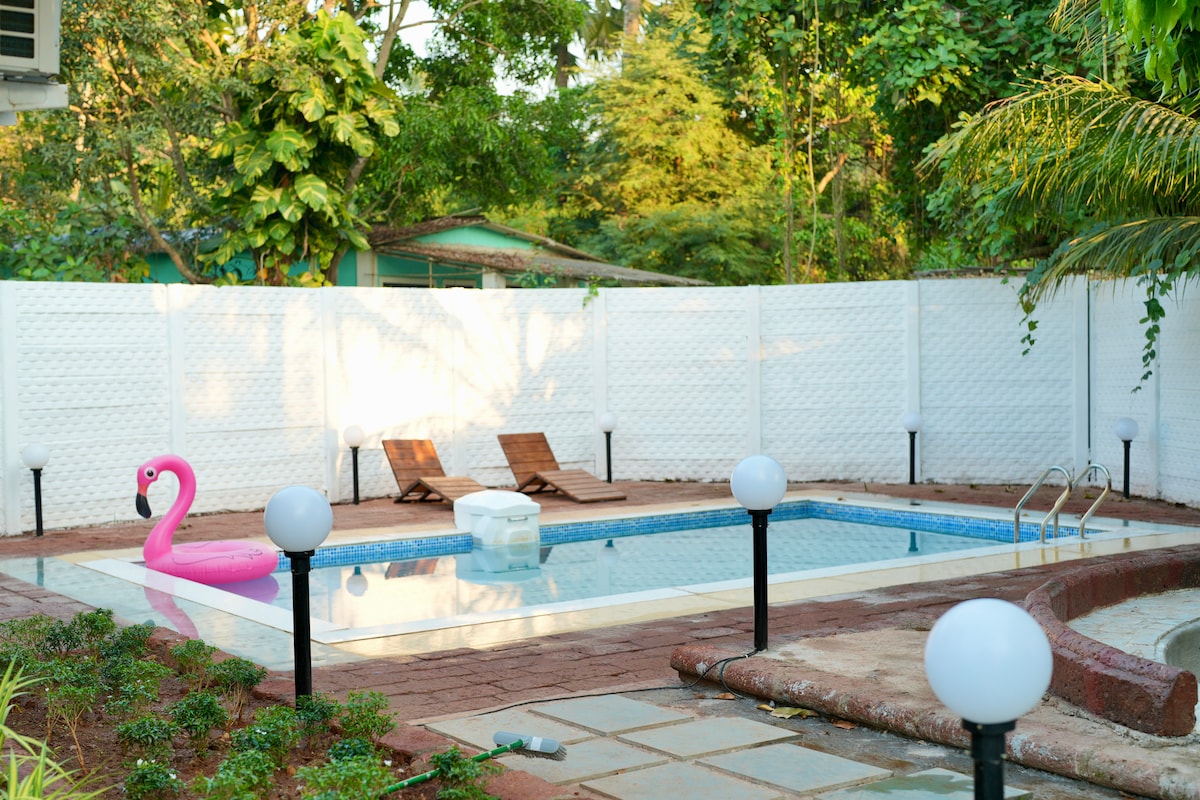 "Welcome to our charming retreat nestled in the heart of Mumbai. This cozy 1 bedroom boasts of a stylish bedroom,a comfortable living area,a patio,a bathroom and a kitchen. Step inside to discover a thoughtfully designed space, adorned with stylish decor in a gated community of row houses. Conveniently located just minutes from popular restaurants and the nightlife around, our home offers the perfect blend of serenity and accessibility.Book now and make memories that will last a lifetime!"