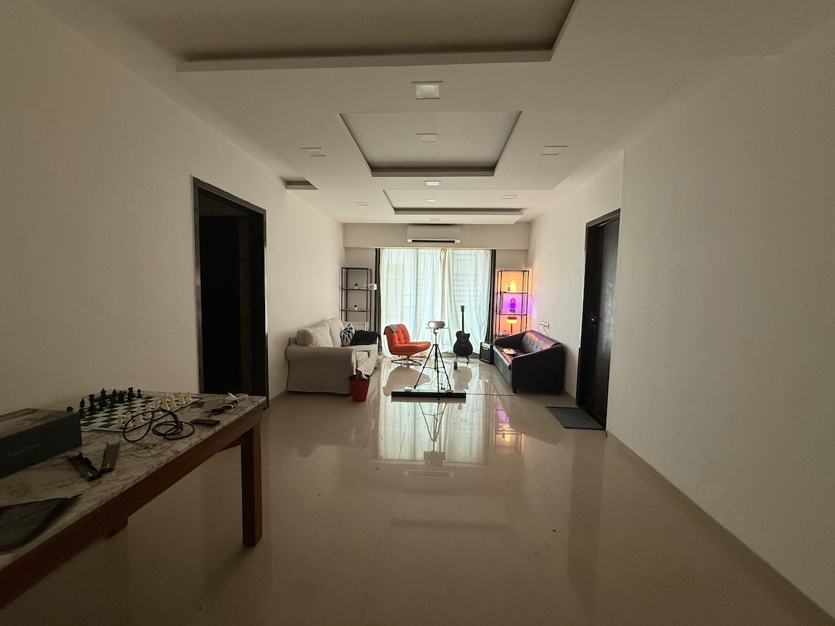 Bohemian Bliss in Kharghar 🛋️ Escape to our serene 2BHK row house🏠, infused with boho vibes🌻, abundant natural light🌞and thoughtfully curated minimalistic decor. Perfect for a stylish getaway, our space features: - Fully equipped kitchen👩🏻🍳 - High-speed internet 🛜 - All essentials for a comfortable stay🛏️ Unbeatable Proximity: - 🏥Tata Hospital (7 mins) - 🛕ISKCON Mandir (6 mins) - 🏟️DY Patil Stadium (15 mins) - 🏫NIFT College (6 mins) - ⛳️Kharghar Valley Golf Course (7 mins)