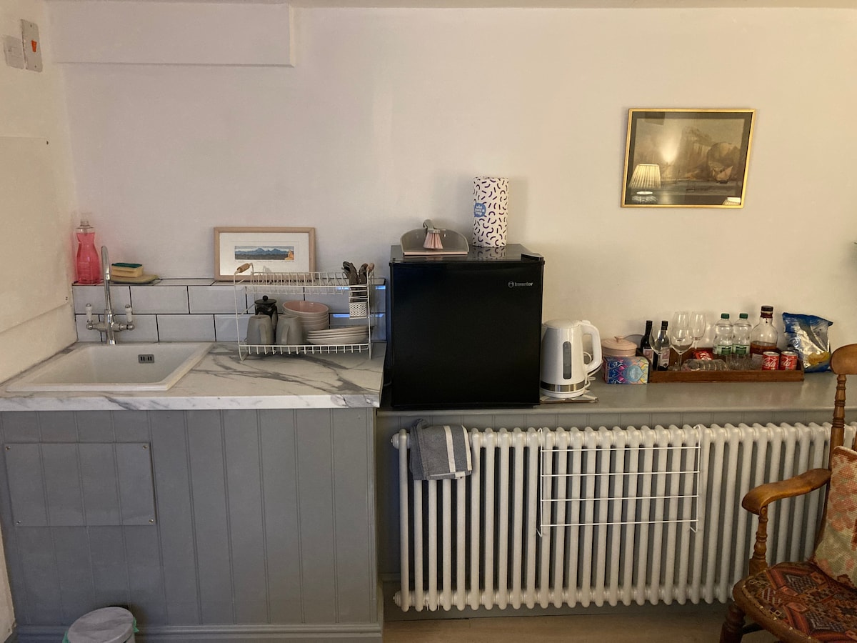 Stay on a quiet street in Broadstairs, 5 minutes walk from the station and local shops, as well as 500m from Viking Bay. This is a separate studio space attached to the main house with a bathroom, full TV services and a kitchenette with fridge, microwave, kettle and toaster. We can add a hob or clothes rack for longer stays as well as a small desk ideal for remote working with strong wifi. Plenty of free street parking and if needed a space on the drive