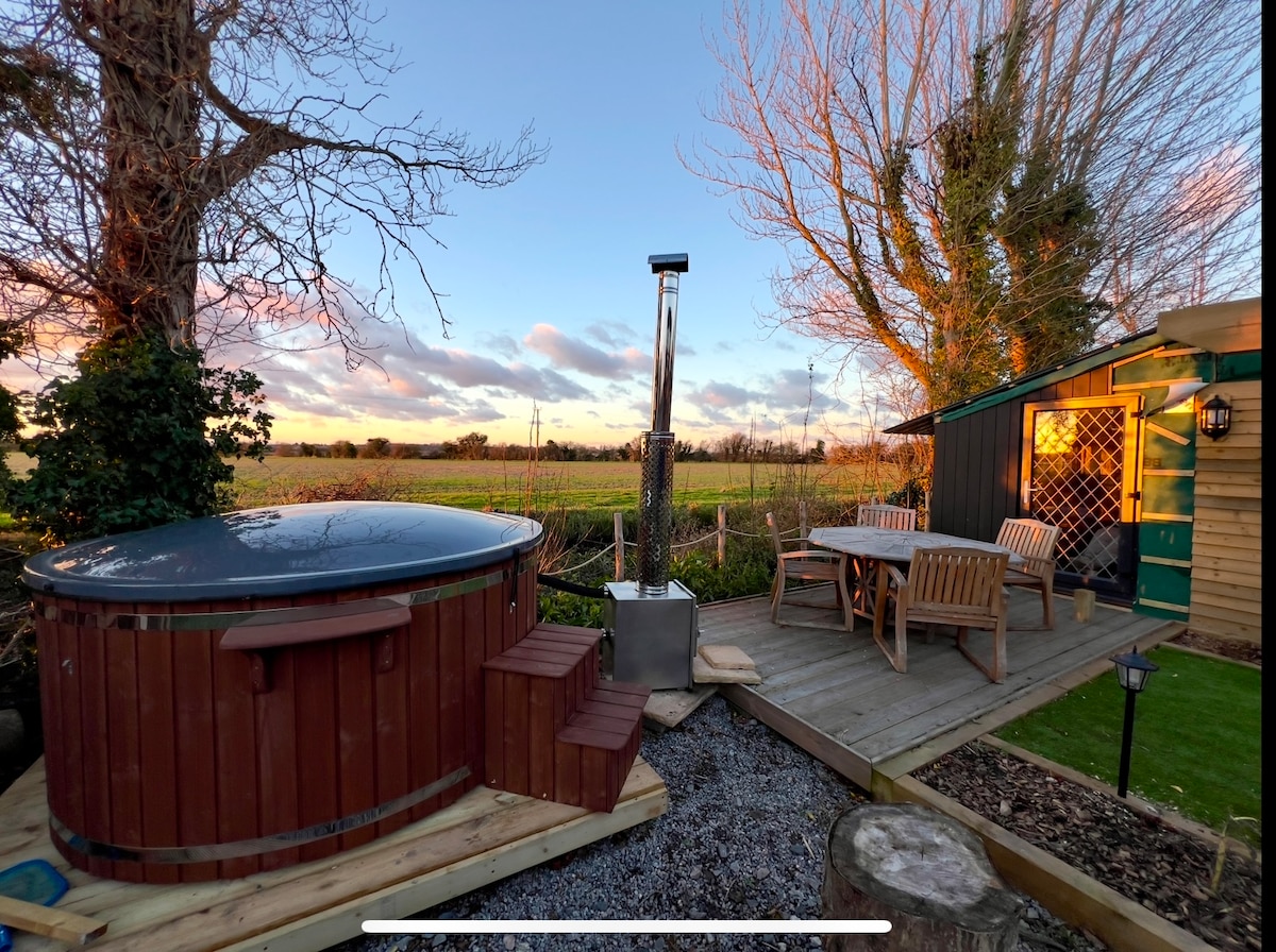 Welcome to Huckleberry Glamping, a peaceful escape set among beautiful countryside with stunning views and scenery and beautiful sunsets. Our cosy lodges offer the perfect place to relax, complete with your own wood-burning hot tub for soaking under the stars. Two friendly village pubs serving lovely food are just nearby, and sandy beaches are within easy reach. Ideal for a quiet, comfortable getaway surrounded by nature.