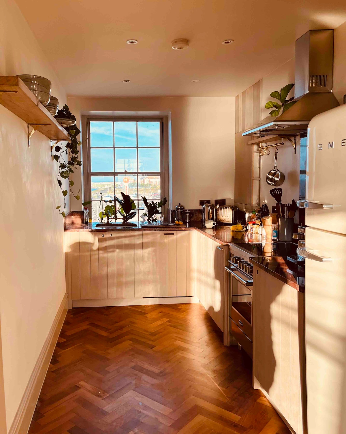 Victorian apartment with a beautiful sea view towards the famed Turner Contemporary. Look out to sea through the porthole window as you start the day with a coffee from the Nespresso machine. Then head out on a short walk round the bay into the vibrant Old Town to explore the antique shops, galleries and cafés. Invite friends over for dinner to watch the sun go down and end the day with a relaxing soak in the bath before climbing into bed to sleep on crisp white sheets.