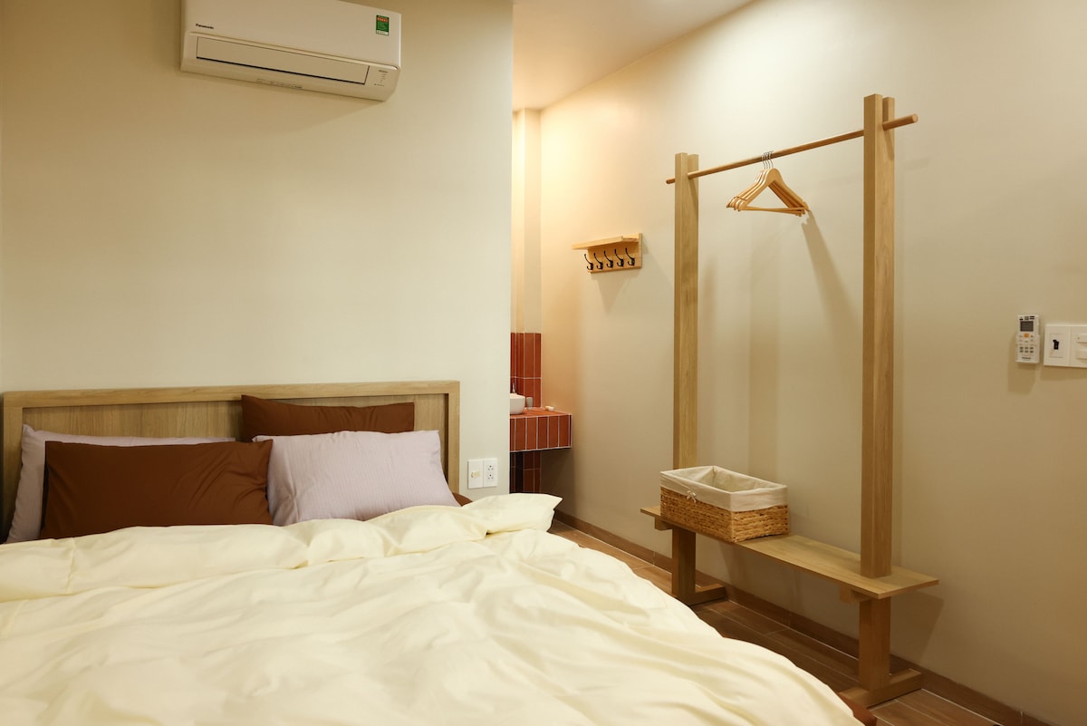 My studio offers a prime location and stylish Indochine design. It's just a short walk from April 30th Park, a cinema, and a supermarket, providing convenience and leisure at your doorstep. The space combines French colonial elegance with traditional Vietnamese touches, creating a warm, inviting atmosphere. With excellent natural light and ventilation, it feels open and refreshing, perfect for a cozy, comfortable living experience.