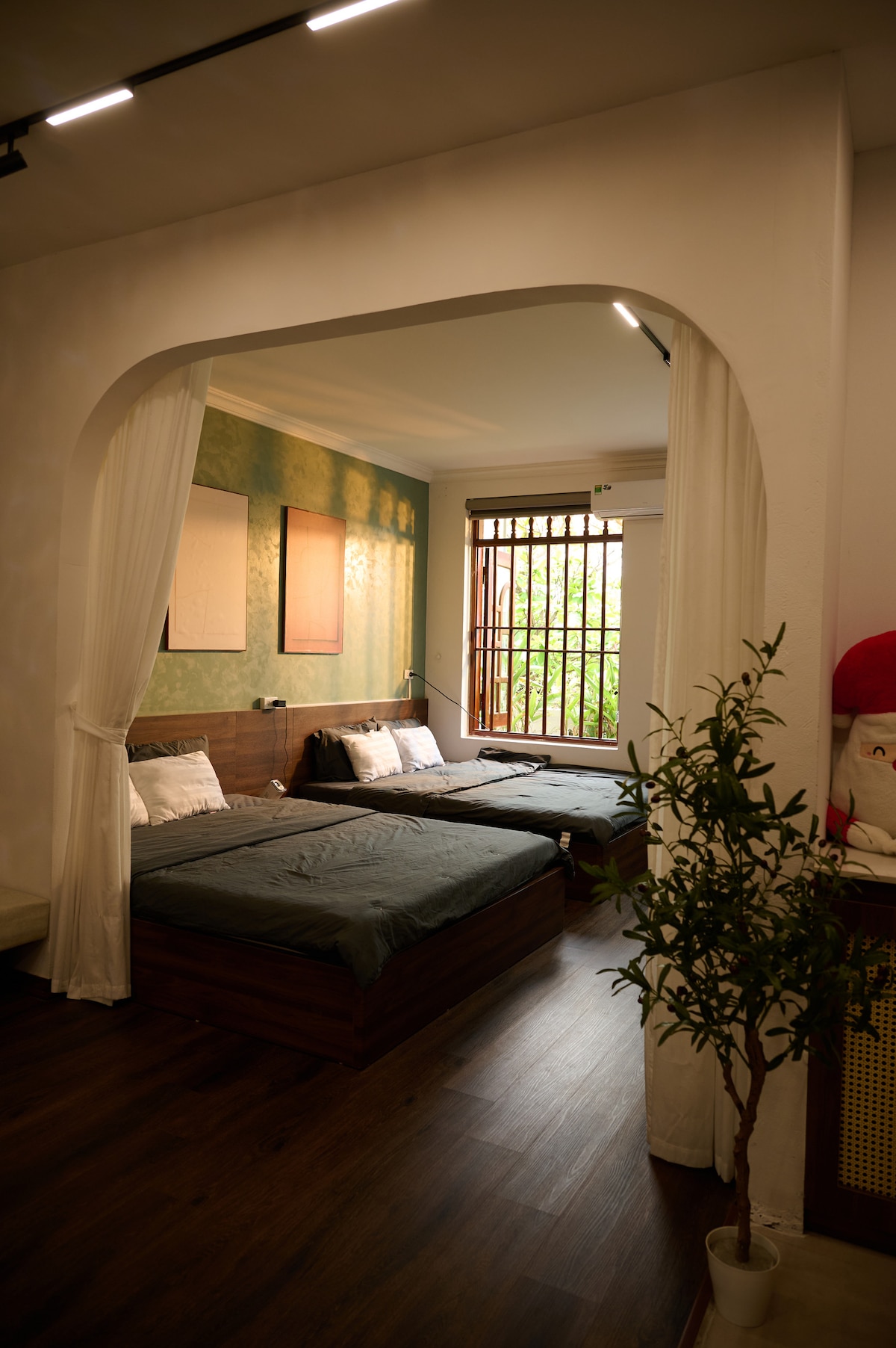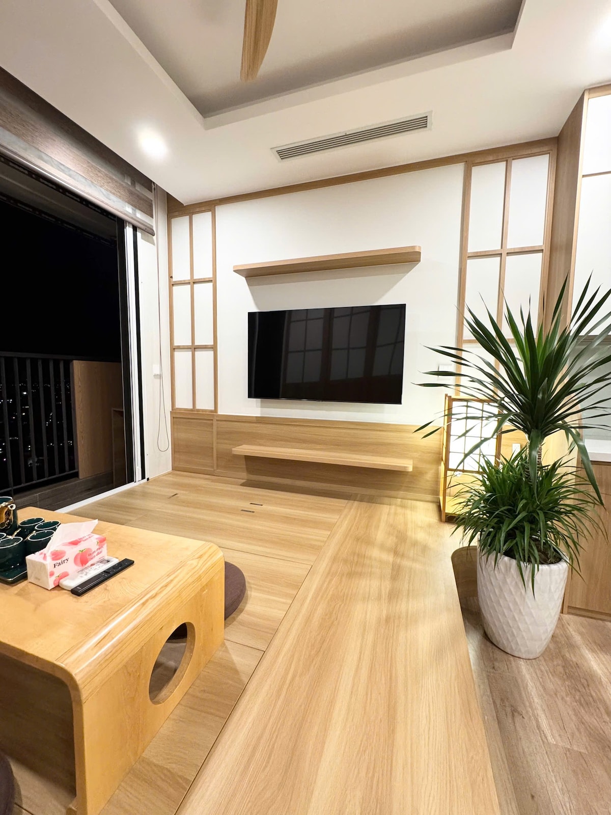2 phòng ngủ, 1 khách Có Netflix miễn phí, 1 bếp, 1 phòng ăn, 1 phòng trà, 2 vệ sinh. Nằm trong tổ hợp vui chơi Sun World Hà Nam, gần các địa điểm du lịch: chùa Tam Chúc, Địa Tạng Phi Lai Tự… Không gian yên tĩnh, thuận tiện đi lại thiết kế theo phong cách Japandi tinh tế, kết hợp giữa sự đơn giản của Nhật Bản và sự ấm áp của Scandinavia. Điểm nhấn đặc biệt là không gian mở rộng theo chiều dọc với trần cao 4.5m, tạo cảm giác thoáng đãng, sang trọng và tối ưu hóa diện tích sử dụng.