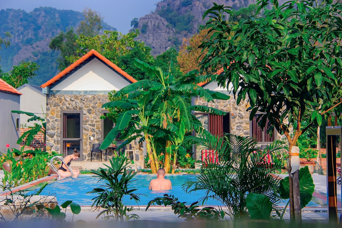 Thư giãn tại địa điểm nghỉ dưỡng độc đáo và yên tĩnh này. Chúng tôi cung cấp đầy đủ các dịch vụ đặt vé xe sân bay, đặt xe di chuyển, xe máy, dịch vụ giặt là và ăn uống với giá vô cùng hợp lý. Các dịch vụ miễn phí bao gồm: bữa sáng, trà, cafe, xe đạp, tư vấn du lịch, sân tắm nắng và bể bơi. Các địa điểm tham quan nổi tiếng: - Tràng An: 2-3km - Hang Múa: 500m - Phố cổ Hoa Lư: 5-6km - Tam Cốc: 6-7km - Tuyệt Tình Cốc: 6-7km - Vườn chim Thung Nham: 11km - Bái Đính: 16km