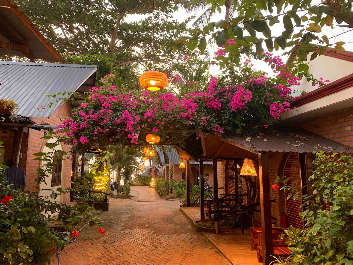 一个充满越南风情的质朴度假村,只有12间独立的茅屋,坐落在大自然中,距离夜市和机场仅几分钟路程。拥有宁静的私人海滩,旁边是每晚都有炫目火舞表演的酒吧。每间茅屋配有摇曳的吊床、舒适的沙发、藤编篮装饰和清凉的陶砖地板。我们使用净水器,减少塑料使用。温馨的共用厨房,让您可以在蔚蓝大海的环抱中亲手烹饪简单的饭菜。