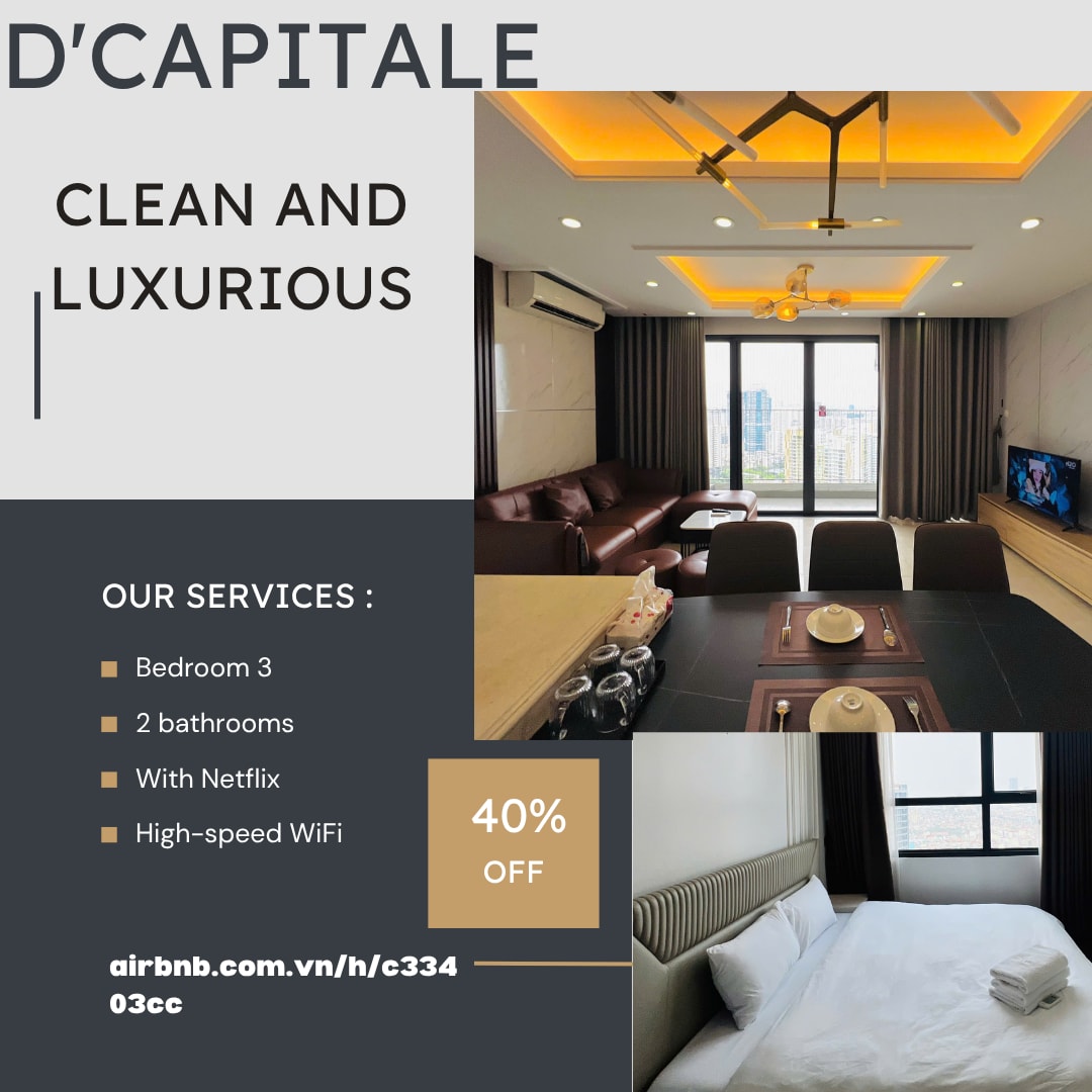 平均评分 4.75 分(满分 5 分),共 12 条评价Vinhomes Dcapitale 3卧室湖景/大凉台