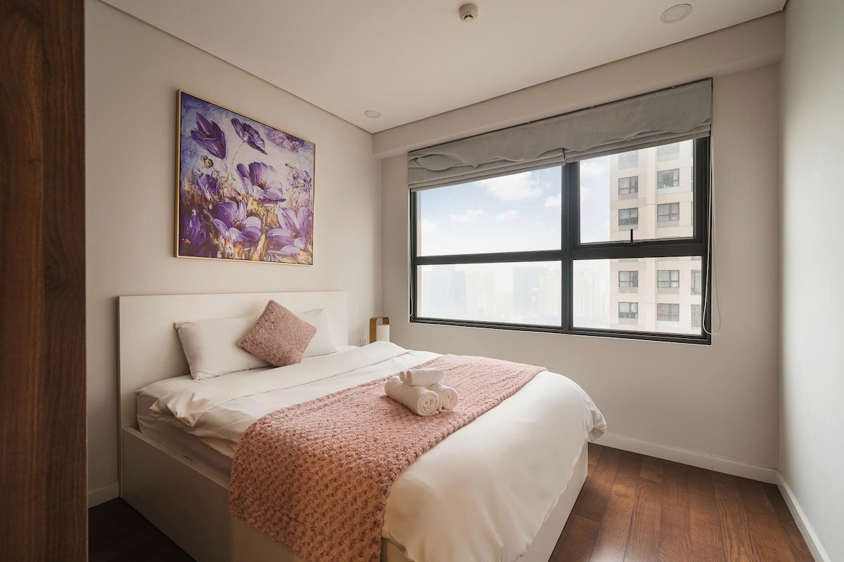◈ The Chain of modern apartments located in Hanoi's luxurious apartment complexes. Vinhomes D’Capitale one of the best place to live in Hanoi. Each apartment is tastefully decorated, sparkling clean and has a great city view, lake view from the best floors.We offer perfect accommodation for couples, families, bussines trip or single travelers. ◈ This brand new apartment has 2Bedrooms with spring mattresses, 1 private bathroom, living-room with comfy sofa for relax with a smart TV..