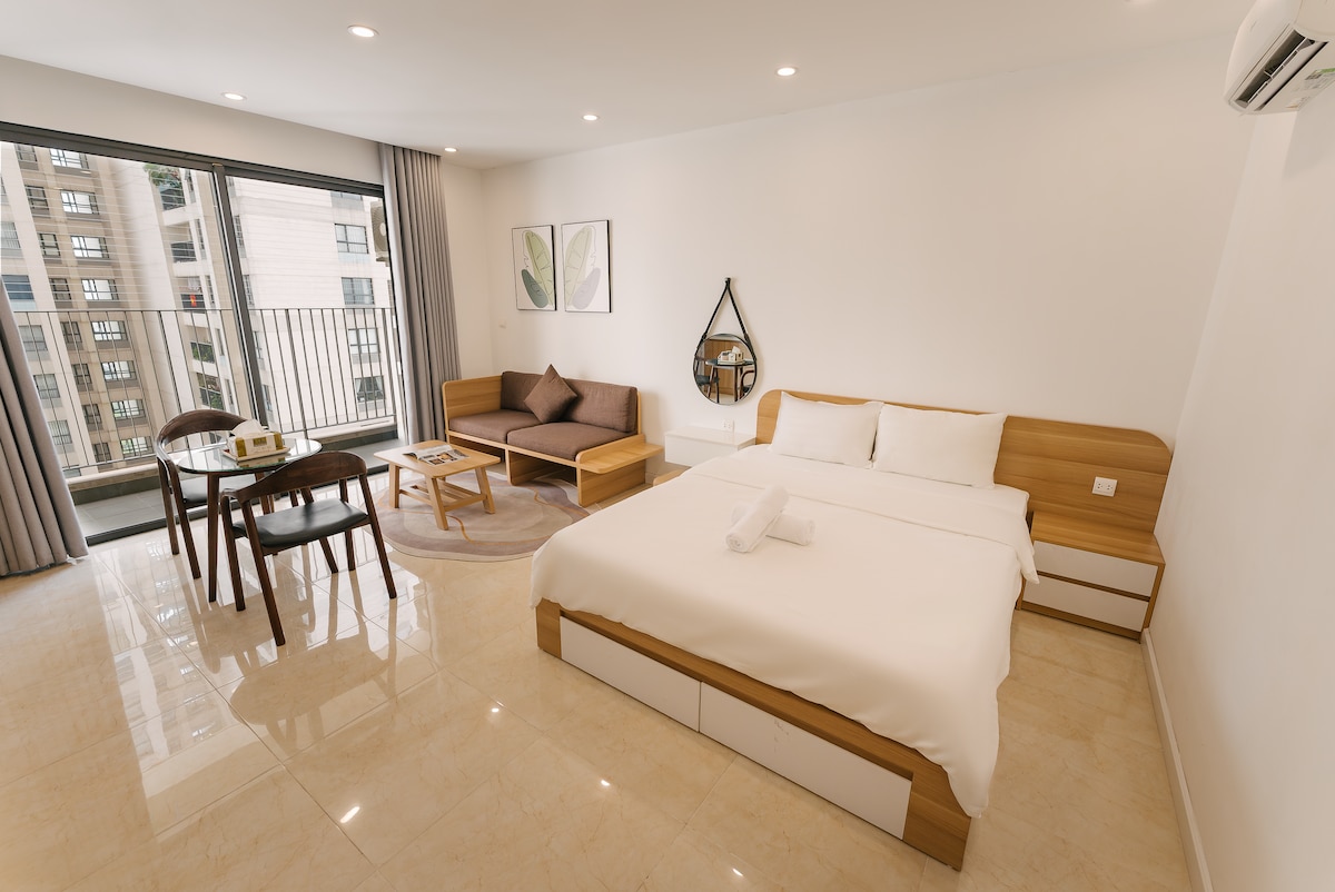 - This is a chain of modern apartments located in Hanoi's luxurious apartment complexes. Vinhomes D'Capitale one of the best place to live, each apartment is tastefully decorated, sparkling clean and has a great city view, lake view from the best floors. We offer perfect accommodation for couples, families or single travelers. - This brand new studio has 1 queen-sized bed, 1 private bathroom, living-room with comfy sofa for you relaxing with a smart TV