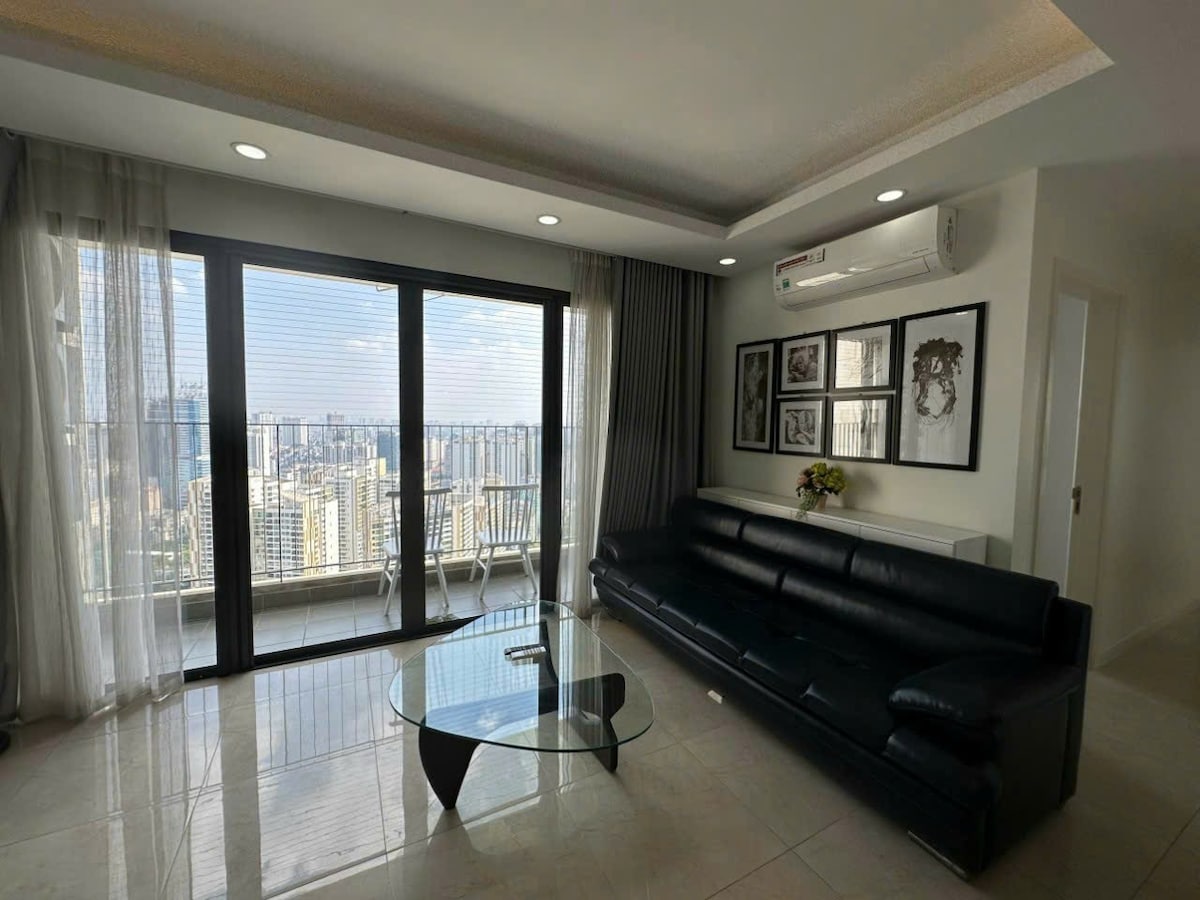 This is a spacious studio apartment located on the 22nd floor of block C2, D’Capitale Complex. With an area of 35m2, the apartment with wooden floors creates a cozy but still airy feeling with a large balcony. Beside the queen bed, the apartment has 1 bookshelf, a large sofa, and a dining table for 2 people. The kitchen is fully equipped with kitchen utensils, suitable even if you have a long stay. The apartment also has a smart SAMSUNG TV with Netflix and fast internet for remote working.