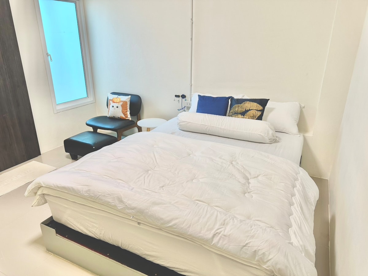 Welcome to our contemporary studio in Rangsit, Pathumthani. It's about 10 km to Don Mueang Airport, perfect for travelers. Featuring a cozy queen bed, a bathroom, and kitchenette, it ensures a stress-free journey to catch your flight. With convenient access to both the airport and nearby attractions, it's your ideal affordablt home near Bangkok. Book now for a comfortable and stylish stay!