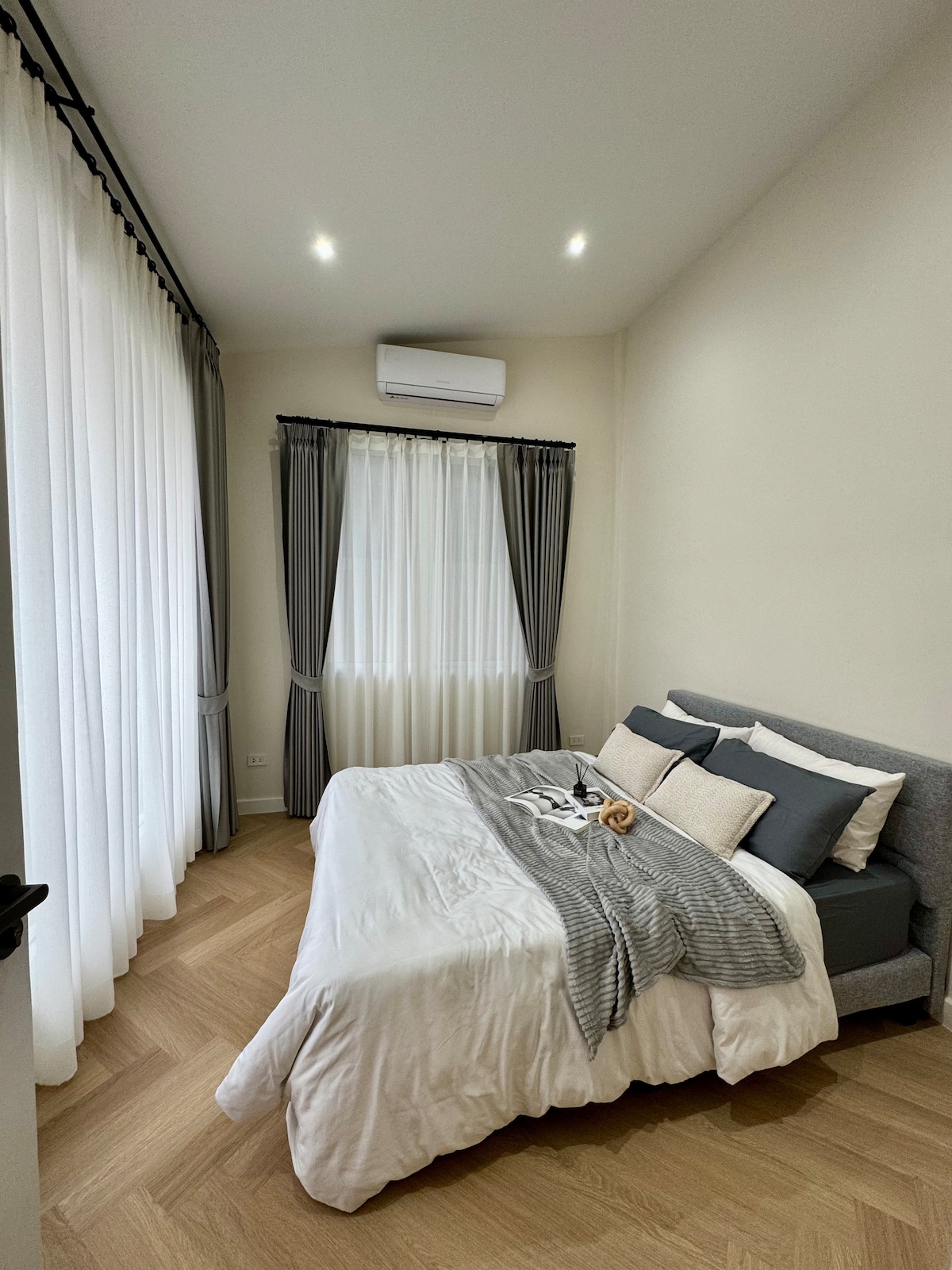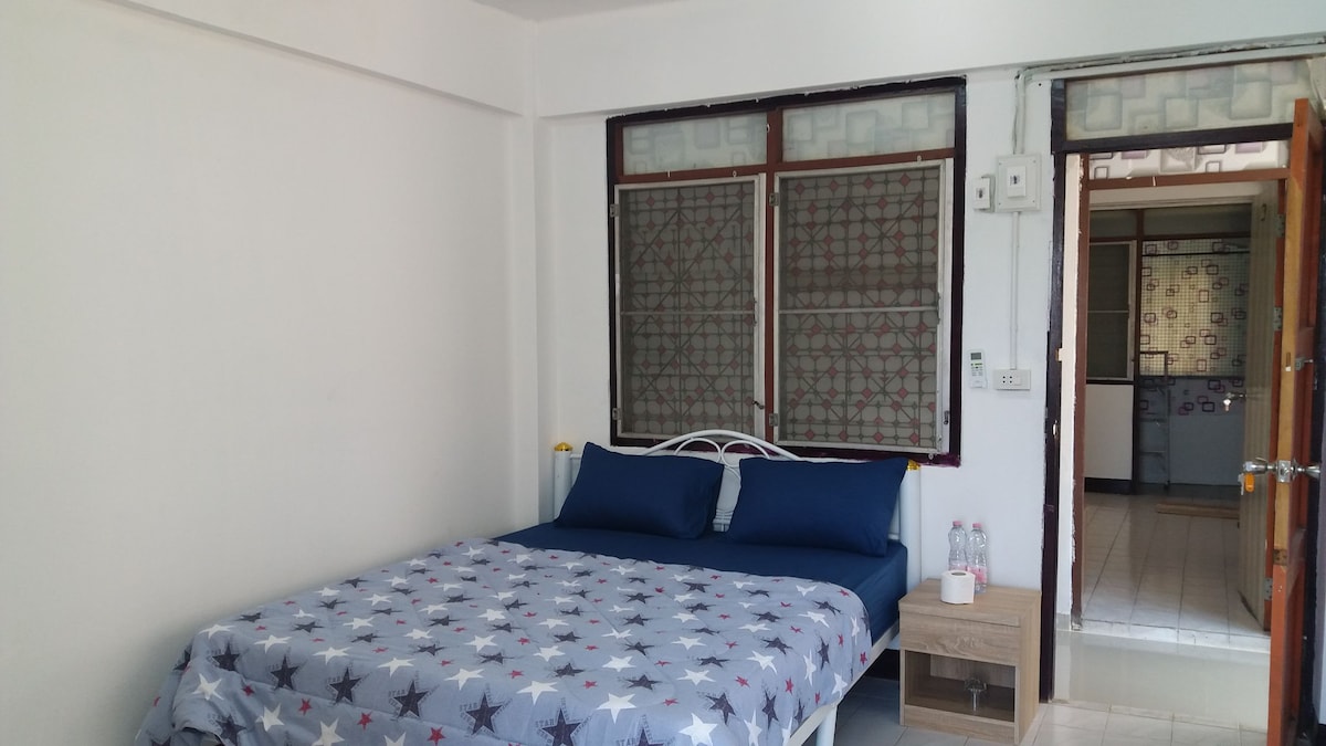 A cozy room with windows so you can enjoy the sky light/ hot water and air con/ king-sized bed/ Small TV/ New Fridge/ Free Wi-fi/ microwave/ hair dryer/ ironing board/ laundry service shop downstairs