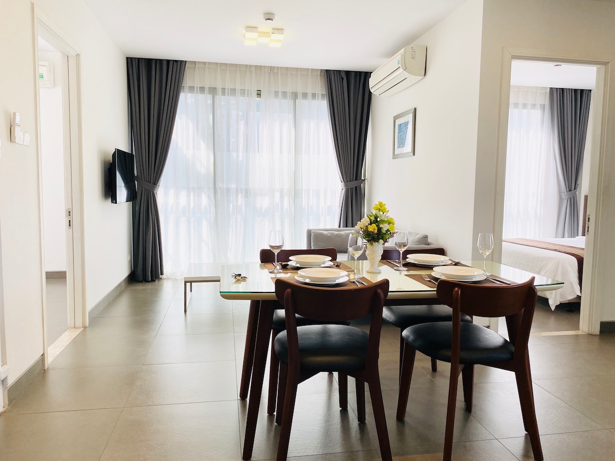 Located in District 2, Kim Apartment is an elegant minimalist one-bedroom retreat just 5 minutes from Thao Dien cafés, Vincom Mega Mall, and Metro Line 1. It features a double bed, built-in wardrobe, open living area with equipped kitchen and washing machine, and an east-facing balcony perfect for sunrise views overlooking a courtyard. Enjoy high-speed Wi-Fi, cable TV, inverter AC, 24/7 security, and fast elevator. Your boutique home in Ho Chi Minh City awaits.