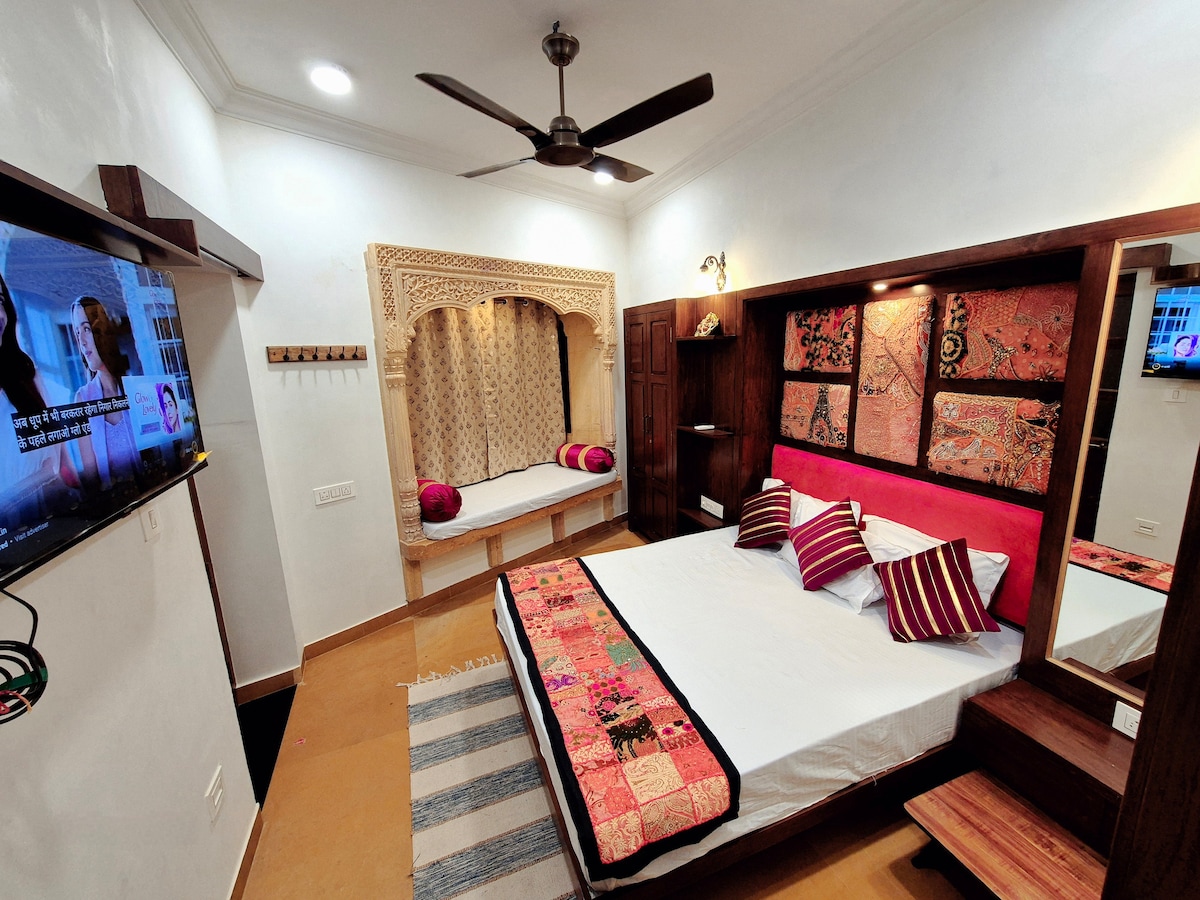 Home-cooked food is also available on request 🍛 — so you can enjoy authentic local flavors during your stay! 🌅 Welcome to our beautiful 2BHK traditional home in the heart of Jaisalmer — just 10 minutes’ walk from Patwa Haveli 🕌 and 1 km from the famous Gadisar Lake 🌅. Step into a space that blends Rajasthani tradition with modern comfort. Enjoy the spacious living area with an 80-inch Smart TV 📺, where you can relax and watch your favorite shows on Netflix 🍿 after a long day of exploring.