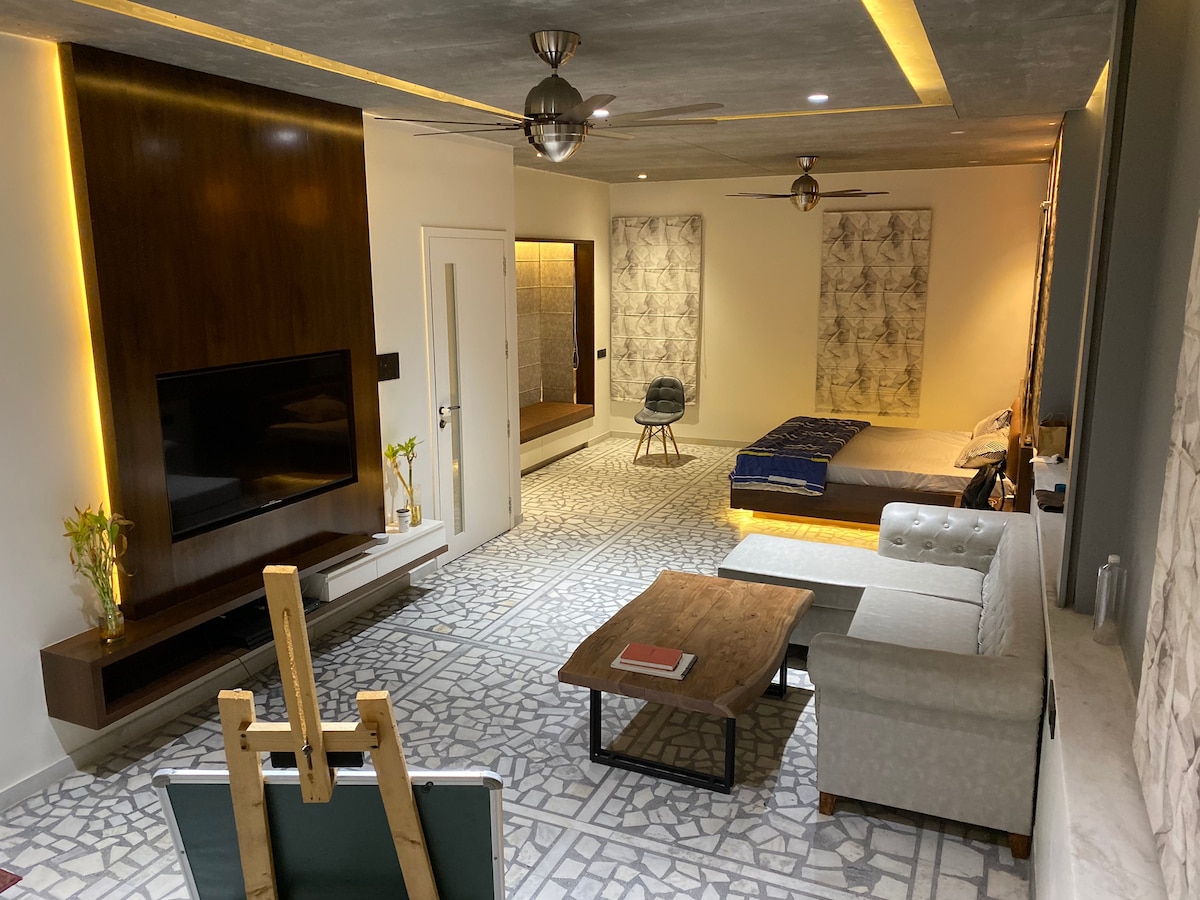 This unique 3 BHK apartment in Jodhpur offers a blend of charm and modern style, perfect for up to 6-8 guests. Nestled in a serene location, it features stylish interiors, a fully equipped kitchen, cozy bedrooms, and a welcoming dining area. The comfortable living space with a Smart TV ensures relaxation and convenience. Ideal for families, friends, or corporate stays, this home provides a perfect base to explore Jodhpur’s vibrant attractions while enjoying its distinctive and inviting ambiance.