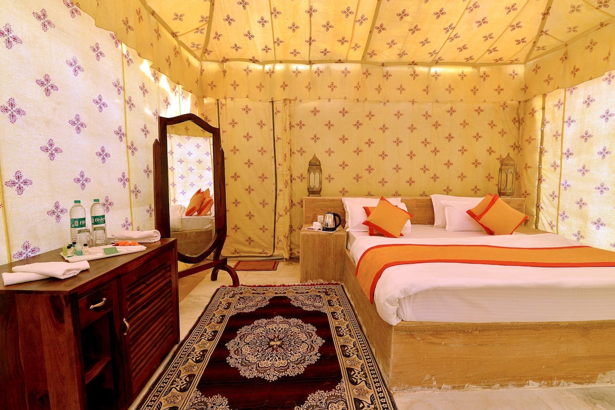Come and experience our luxury tented accommodations, camel safaris and unforgettable adventures in the golden sand dunes located just 35 kilometers outside Jaisalmer, the world-famous golden city. Camp is located at a very peaceful location surrounded by sand dunes and guests can enjoy the feeling of complete seclusion and escapism from the outside world.