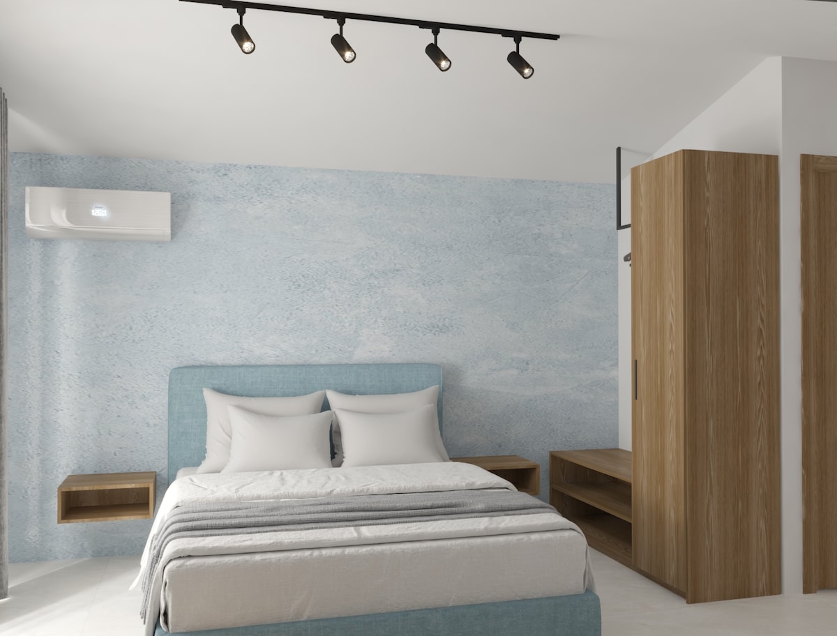 Μέγεθος: 25 τ.μ. Κρεβάτια: 1 διπλό Επισκέπτες: 2 άτομα Μπάνια: 1 μπάνιo Ιδιαίτερα Χαρακτηριστικά: Εξοπλισμένη κουζίνα μικρή Φωτεινό και ελκυστικό το δίκλινο αυτό, κερδίζει τις εντυπώσεις με τα γήινα χρώματα που επικρατούν στο χώρο. Ένα ξύλινο, διπλό κρεβάτι, με κεντημένα κλινοσκεπάσματα και τα κομοδίνα του είναι το πρώτο που βλέπετε. Από ξύλο οξιάς είναι και η ντουλάπα, η τουαλέτα με τον καθρέφτη και το γραφείο, που συμπληρώνουν την αίσθηση οικειότητας και άνεσης.