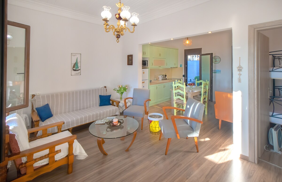 Our home is recently renovated and situated near public transport. The vintage kitchen, the comfortable couch- beds, the tall ceilings, the cozy atmosphere ,the sunny rooms and its location, which is around 300 metres far from the beach, make it unique. It is ideal for couples, for a single person who wishes to have tranquility or nearby activities ,for business travelers, families with children and even pets . Fishing is also an optional activity that we would surely recommend .