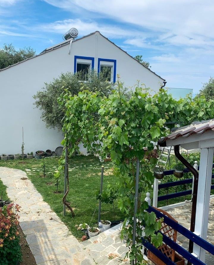 Blanc Maisonettes is a complex of three elegant properties, surrounded by olive trees in Prinos , Thassos Island. The Blanc Maisonette I, a minimal home with high-end finishes and a lush greenery garden, is a perfect idea for a family vacation or a getaway with friends.