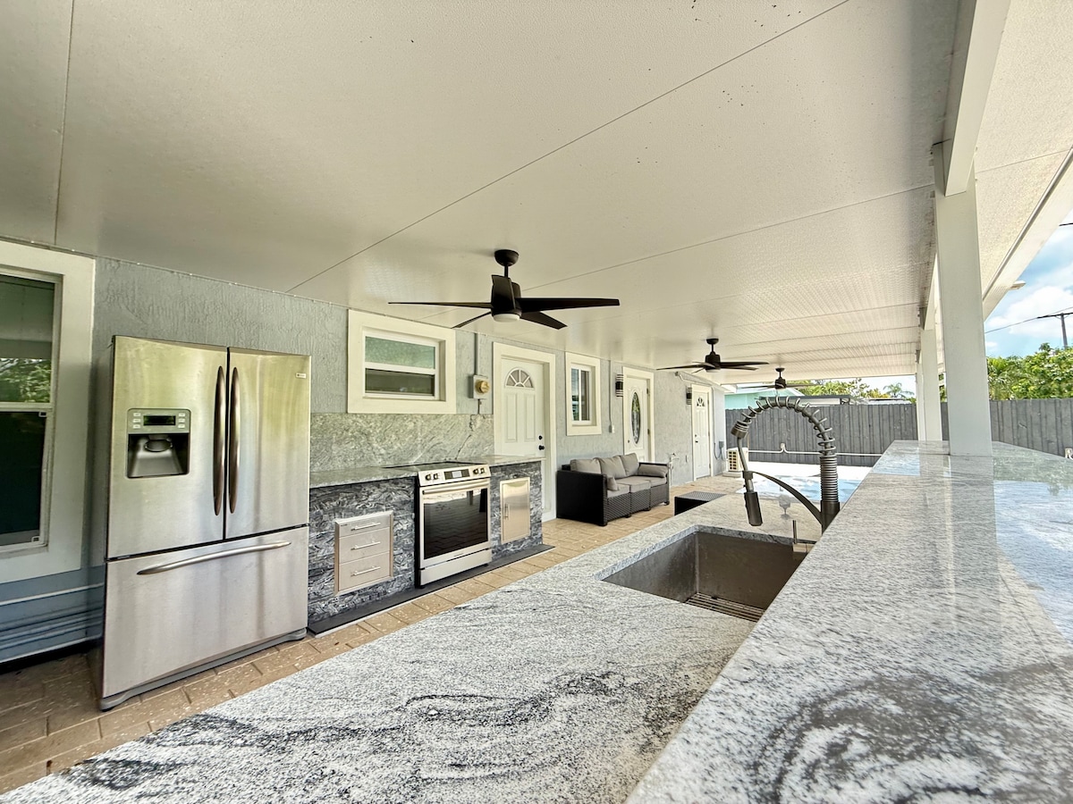 Welcome to our newly renovated executive standalone house, featuring modern furnishings, high-end appliances, and luxurious amenities. Relax in the spacious living room, cook a gourmet meal in the fully equipped kitchen, or unwind on the large patio with comfortable outdoor furniture. You'll love the jet massage shower, soft king size bed, and quiet location. Enjoy a private entrance, two dedicated parking spots, and smart 65" TV. Book now for a convenient and luxurious stay in West Palm Beach.