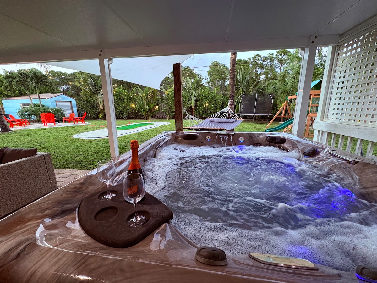 Drift Inn – Welcome to your own slice of waterfront paradise in Palm Beach County! This spacious lakefront escape sleeps 14 and is packed with resort-style amenities: unwind in the hot tub, perfect your swing on the putting green, or fire up the grill at the outdoor kitchen/bar. With stunning Lake Osborne views and sunsets that steal the show, every inch of this home is designed for fun, comfort, and connection. The perfect setting for families, friends, and unforgettable memories.