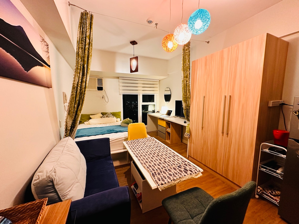 Welcome to Your Serene Urban Escape! Nestled in the heart of Cebu City, our spacious studio unit offers a calming Zen-inspired ambiance with soothing wood toned and lush greenery, providing the perfect sanctuary to unwind. Relax on the double bed after exploring the bustling city, and step out onto the 12th floor balcony for breathtaking views of the city skyline and mesmerizing sunsets. Book your stay now and indulge in a truly unforgettable urban oasis.
