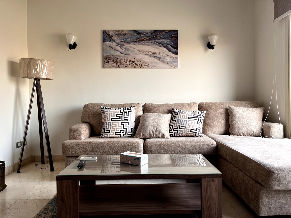 Experience ultimate relaxation at One-77, a premium stay in the heart of New Cairo, just one minute from the American University in Cairo (AUC).Designed for comfort and elegance. One-77 features luxurious furnishings, a private entrance for added exclusivity, and a refined atmosphere. Enjoy the convenience of professional housekeeping, with thorough cleaning after every checkout, as well as dry cleaning services to ensure a seamless and comfortable stay. Long stays and short stays are available